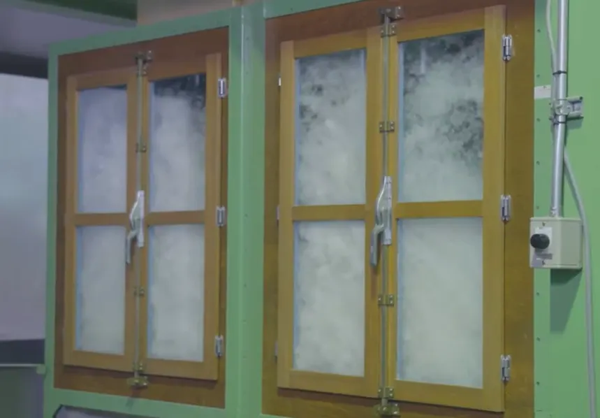 専用の機械で、羽毛を徹底的に減菌処理します。塵やゴミを取り除くことで、製品化できるふっくらとした羽毛になるんです。