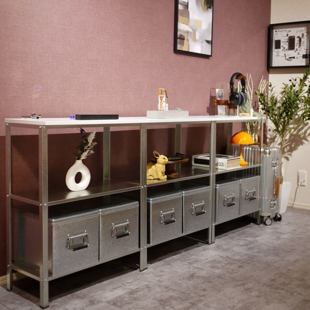 棚が無機質な素材感だからこその うさぎさん💕
