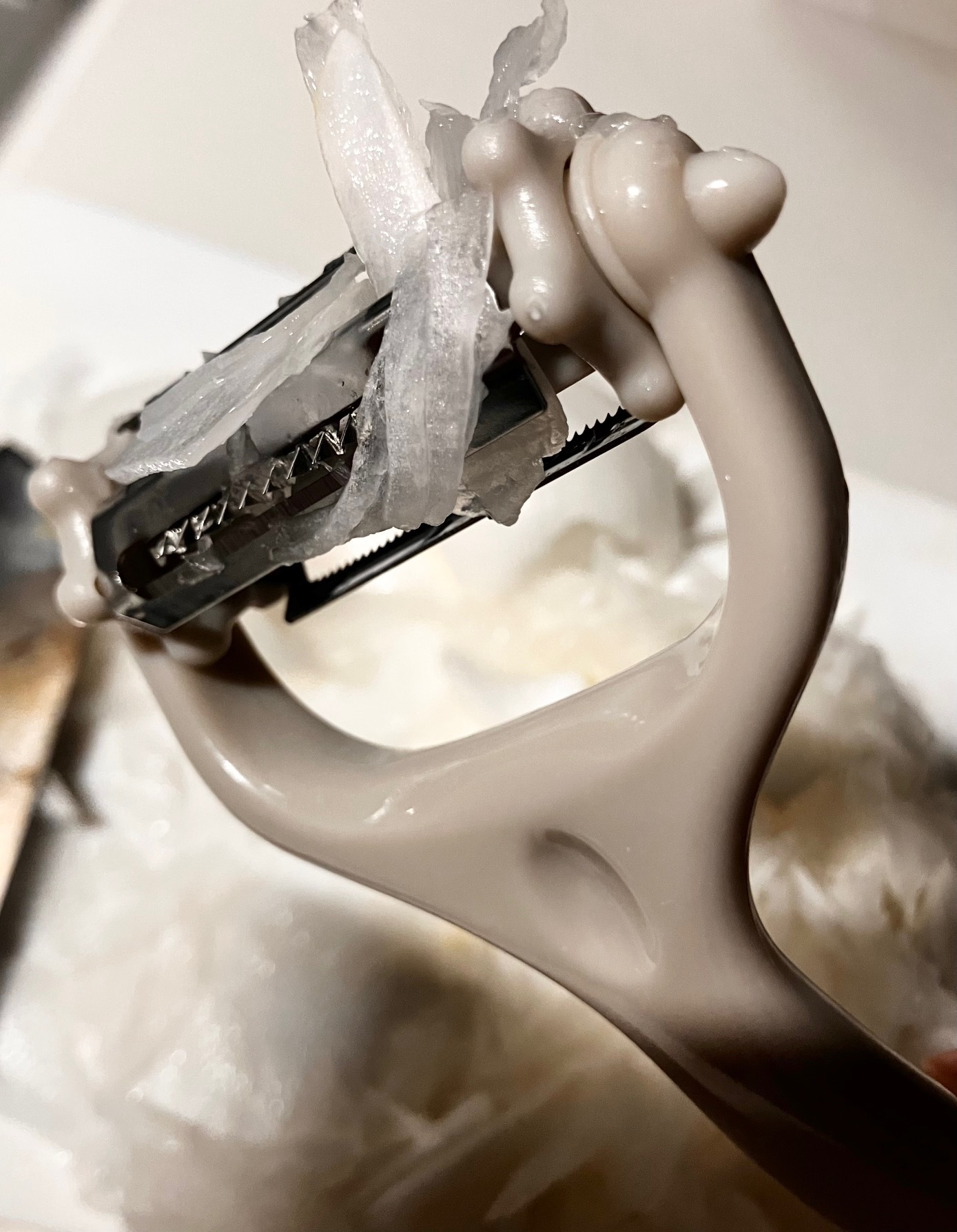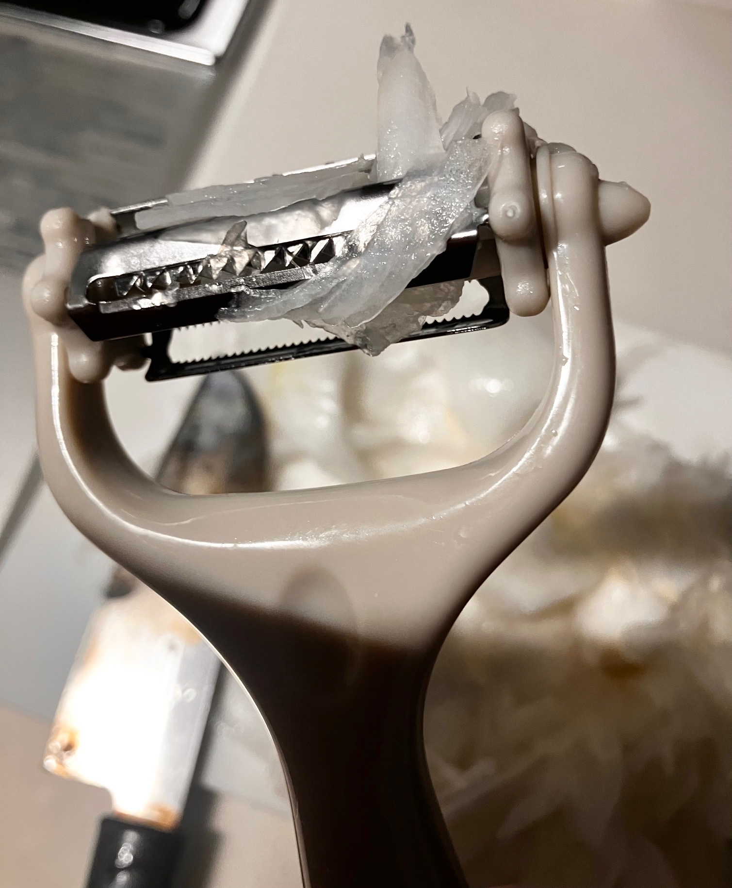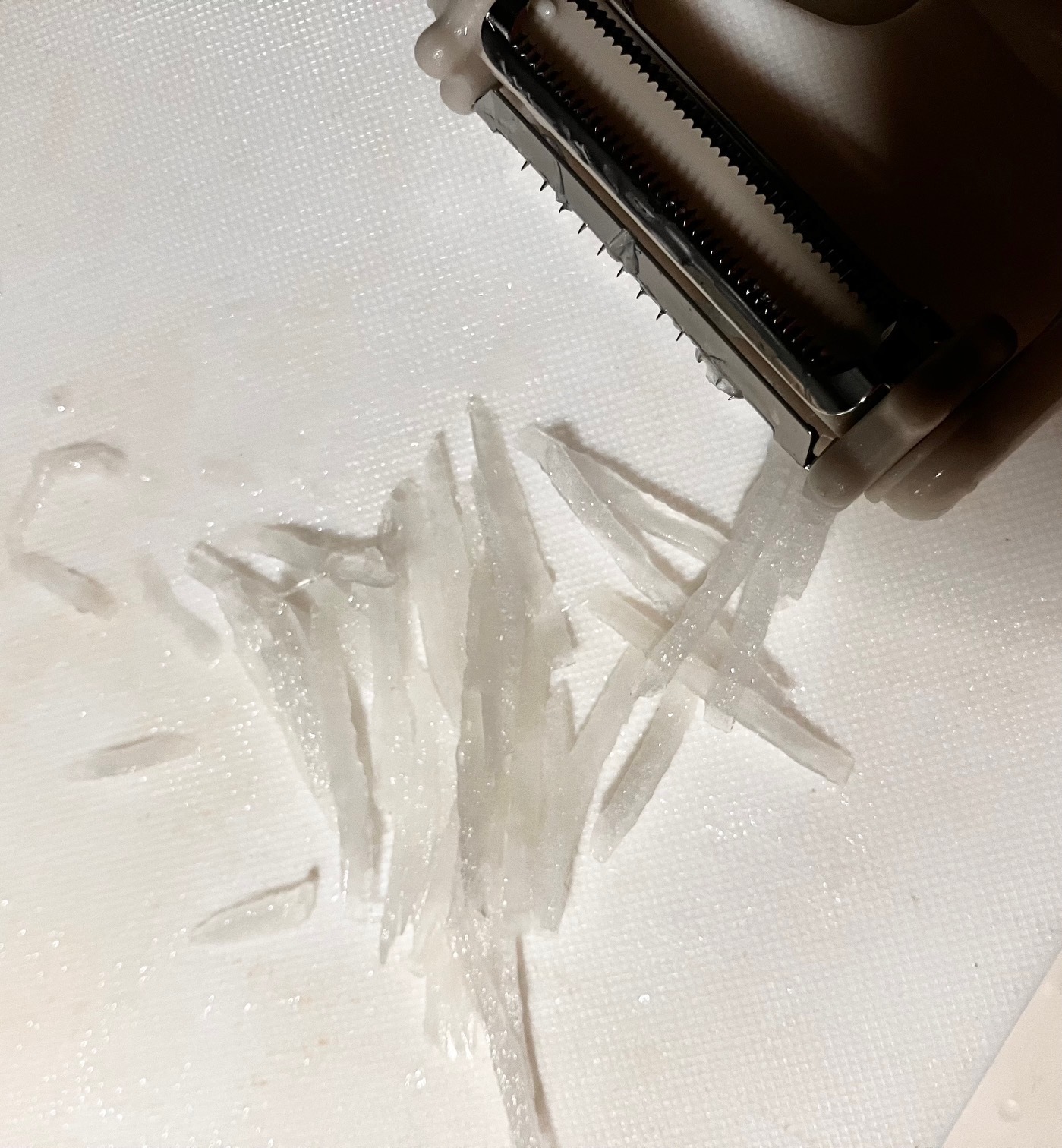 皮むき用の歯でやった方は薄くてキレイですね😄