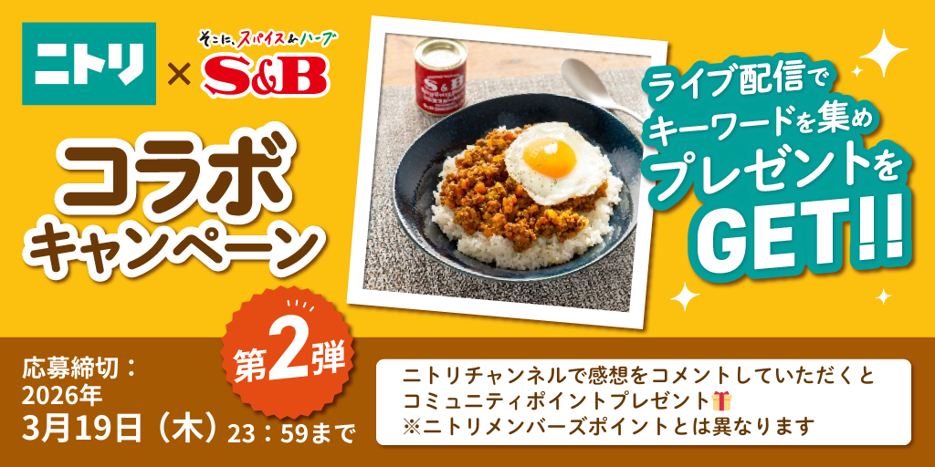 ニトリチャンネルでは、エスビー食品様とのコラボ企画「第2弾」を実施します!