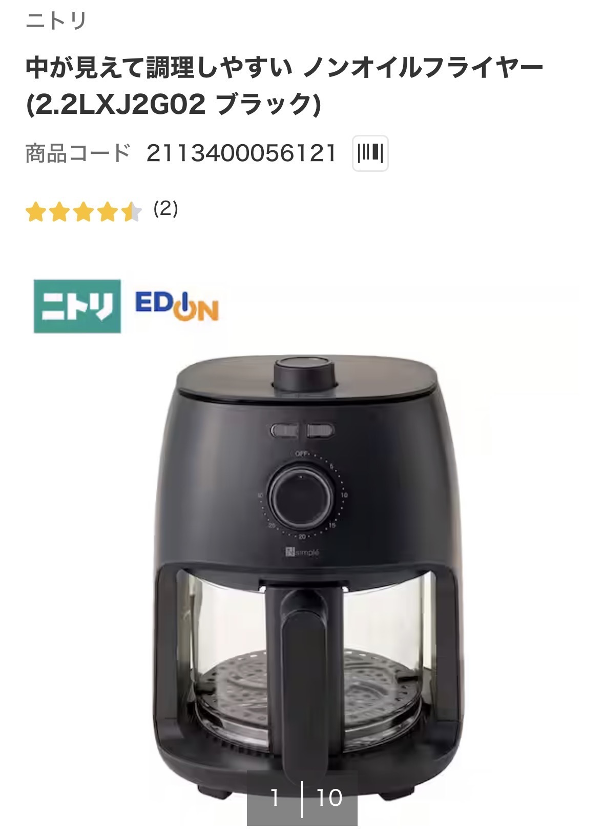 ノンオイルフライヤー2.2L