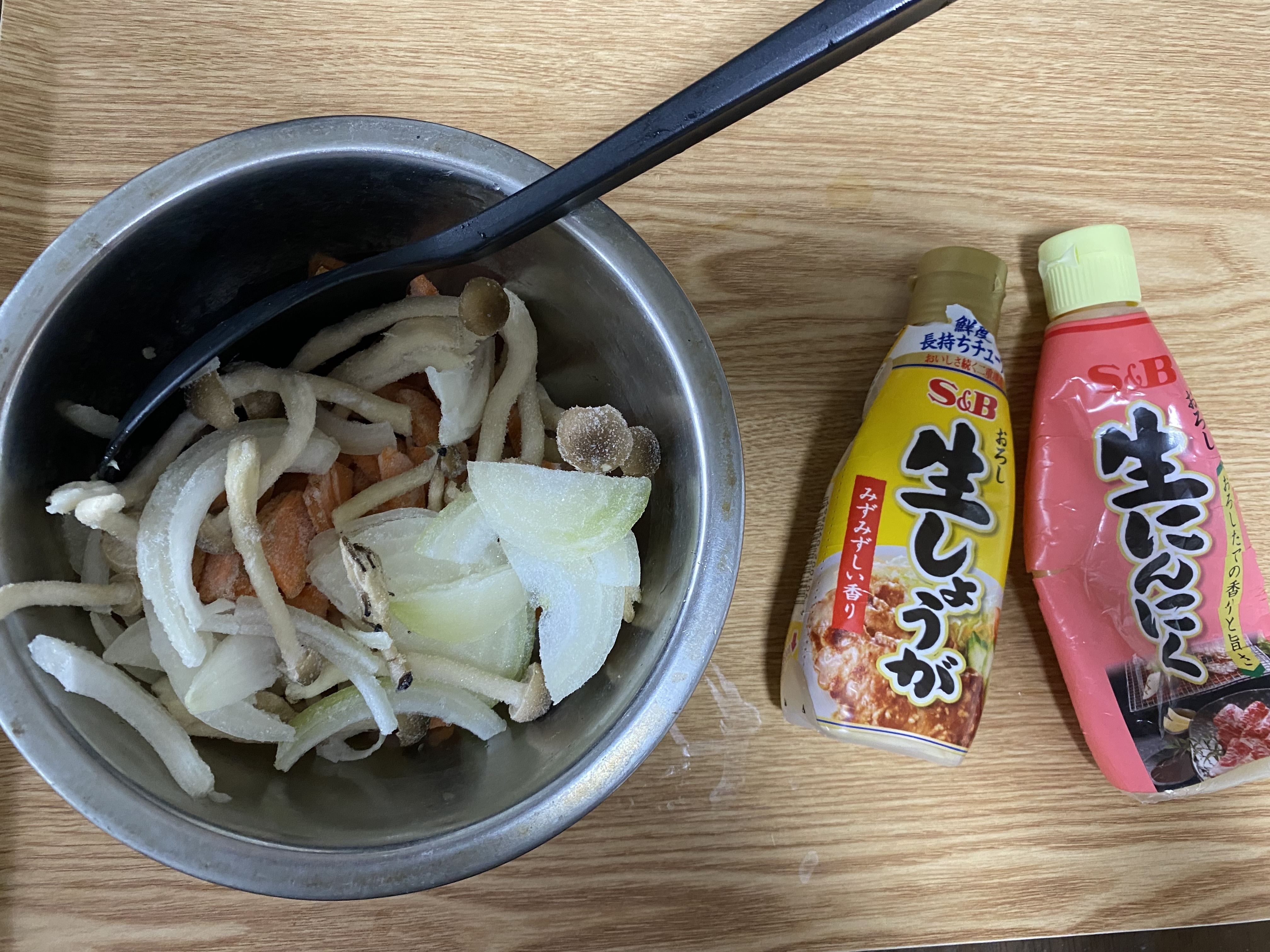 冷凍してた野菜(にんじん、玉ねぎ、しめじ)