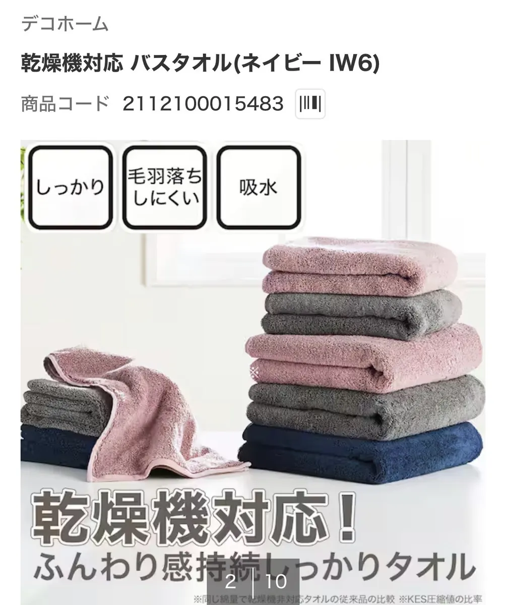 こちら最近デコホームLIVEで紹介されていた乾燥機対応のタオルです。