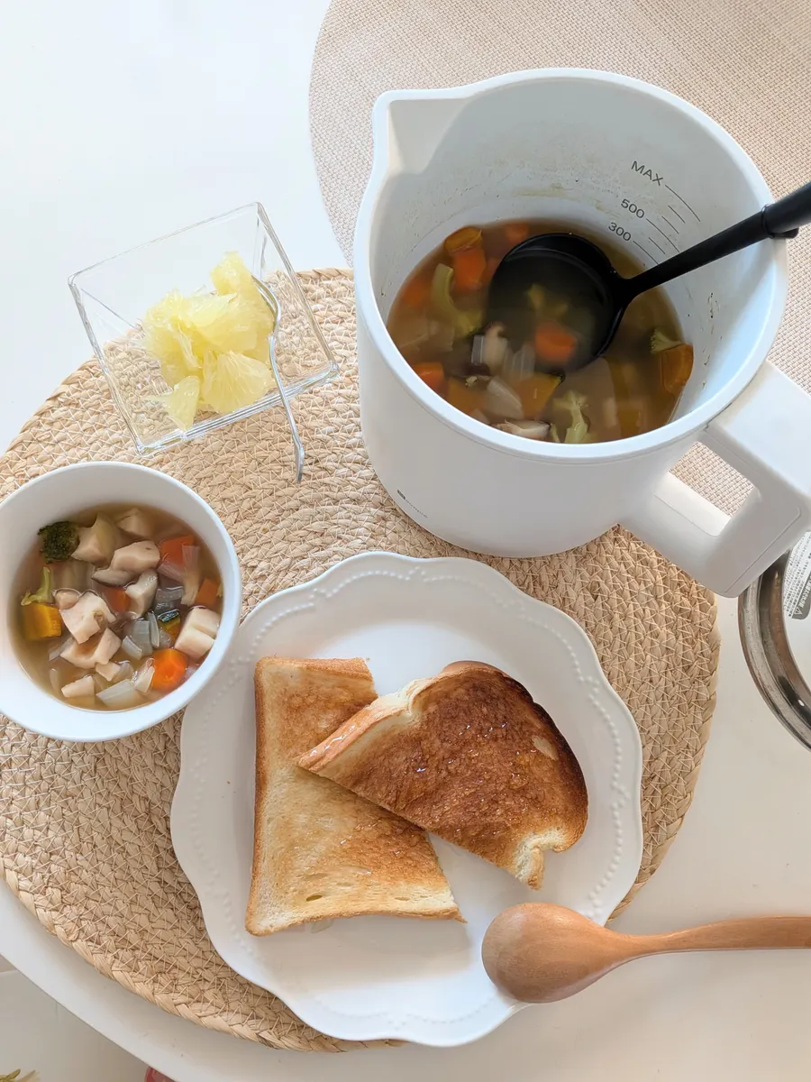 投稿を表示優しいスープとトーストで素敵な朝食ですね✨