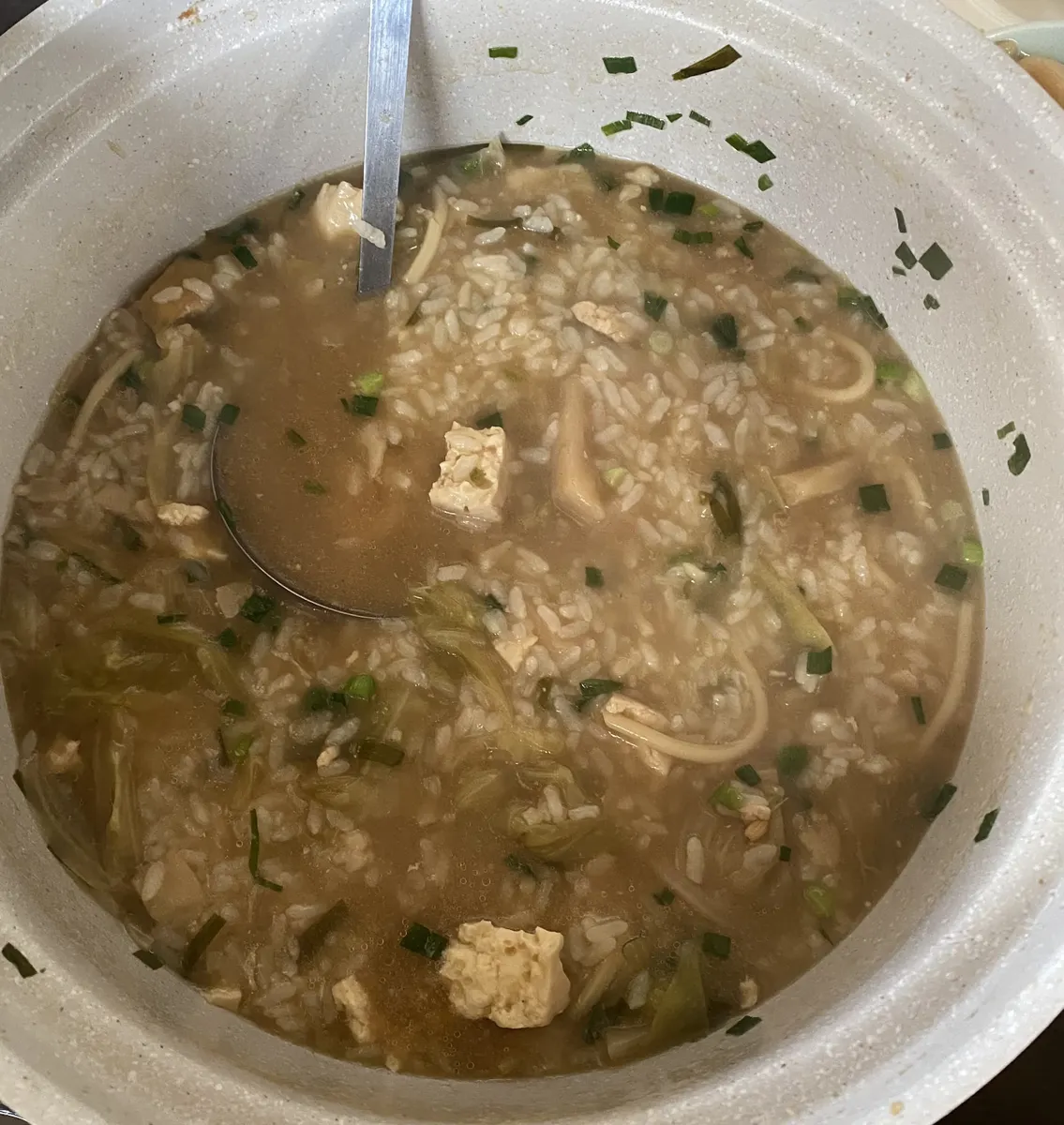 ④雑炊する場合、ご飯を入れ、一煮立ちしてから溶き卵を入れてフタをして火を消し、余熱で火を通します。