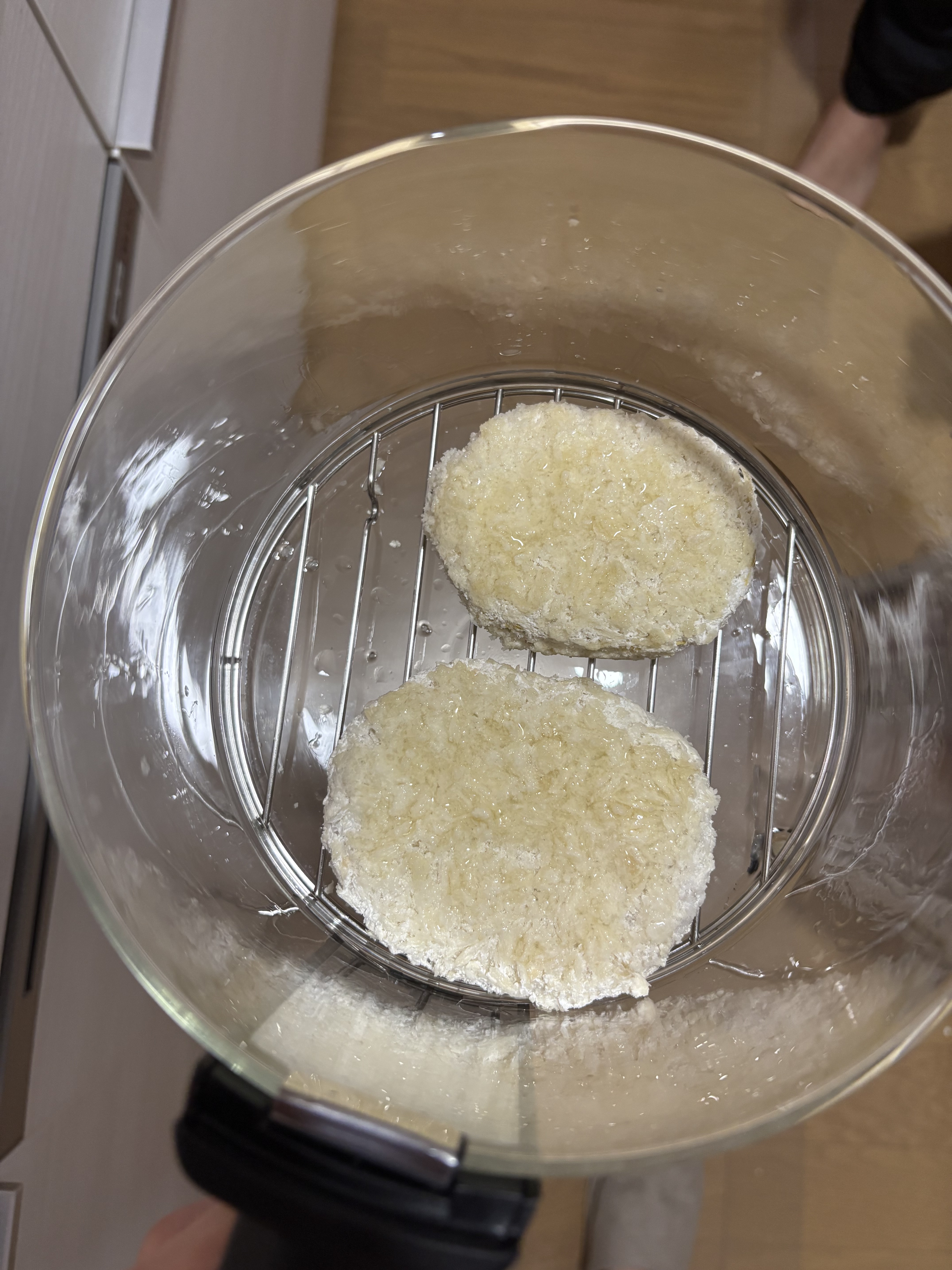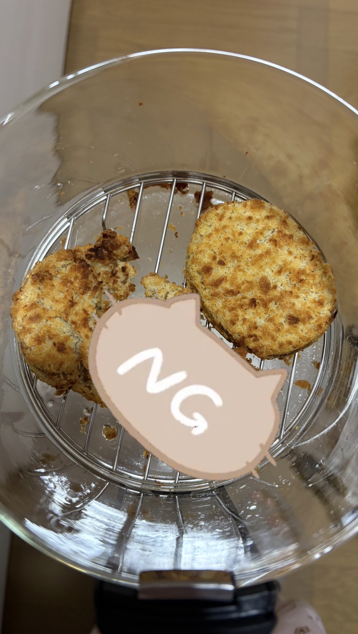 熱風で温められながら冷凍コロッケ自体も柔らかくなっていたのでひっくり返す時に1個失敗してちぎれちゃいました笑笑😂