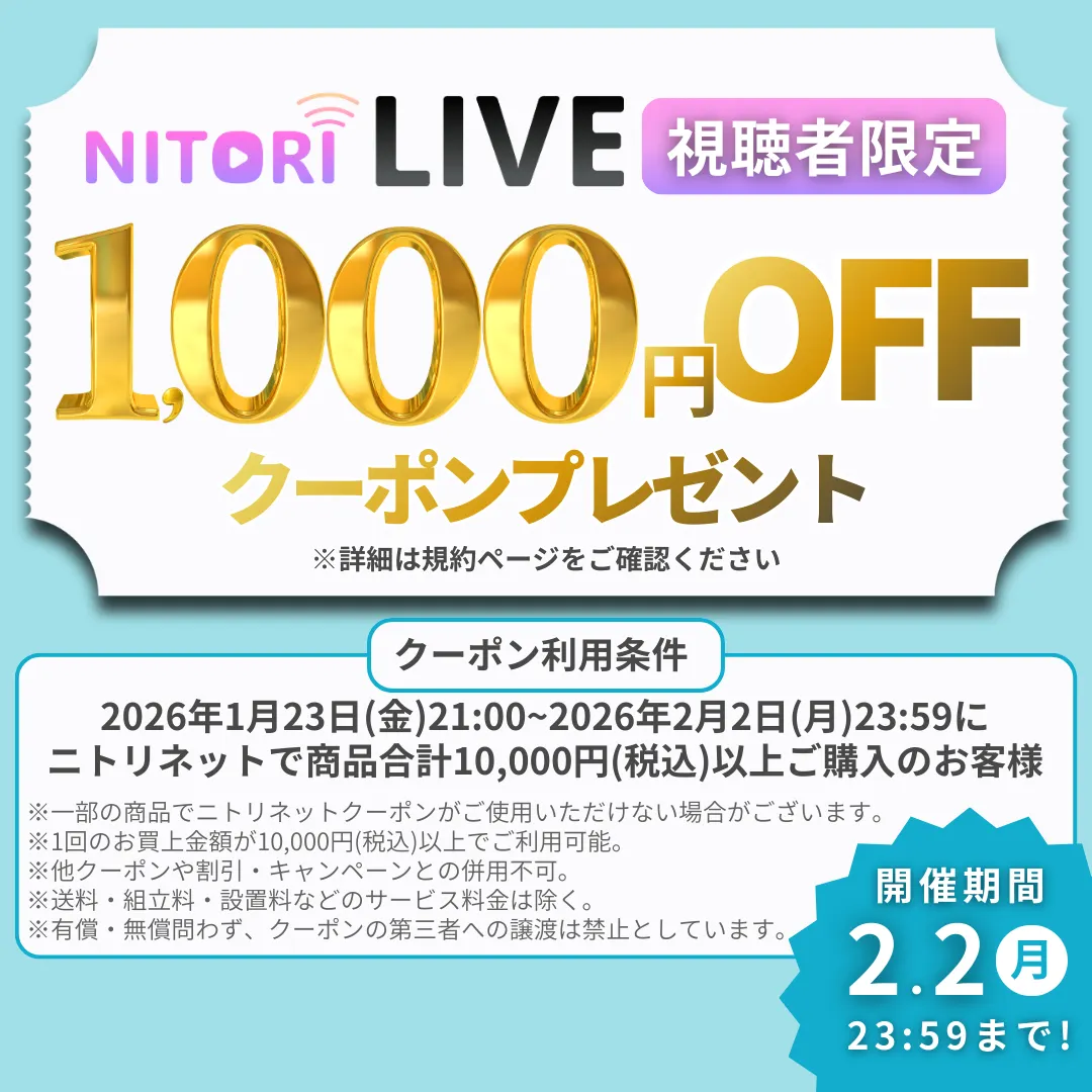 ニトリネットにて商品合計10,000円以上(税込)以上ご購入のお客様へ1,000円OFFクーポンを