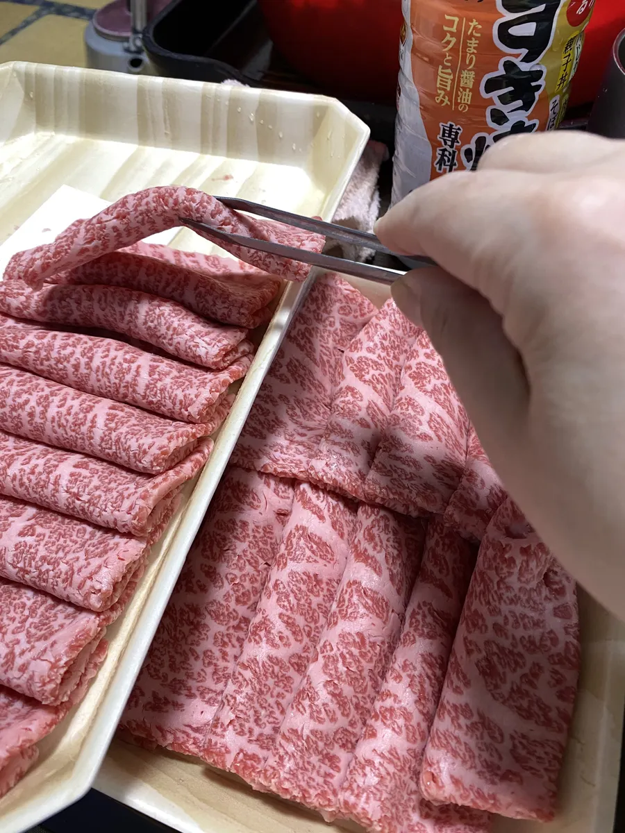 すき焼きの薄いお肉もつかみやすいんです。菜箸のようにコロコロ転がらないからとっても楽💕