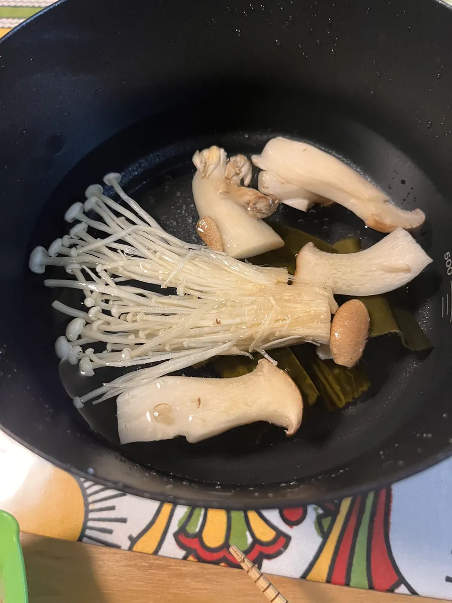 カニ鍋のつゆは、使わずに昆布だしときのこのだしでいただきます。