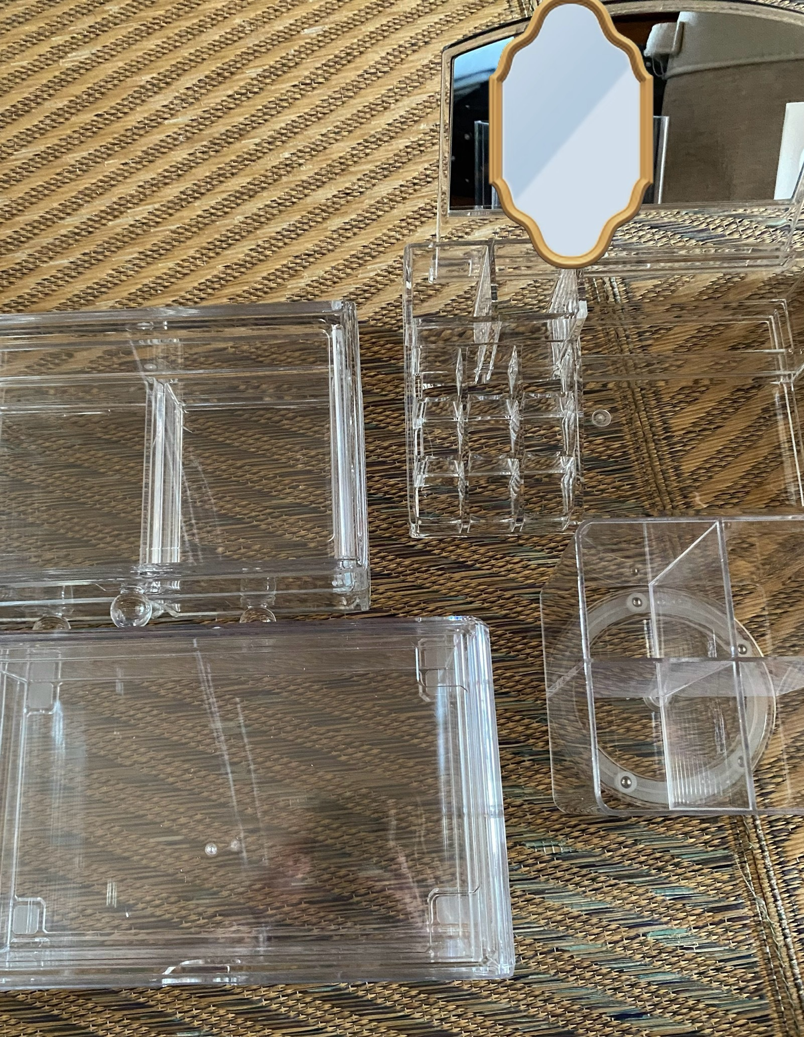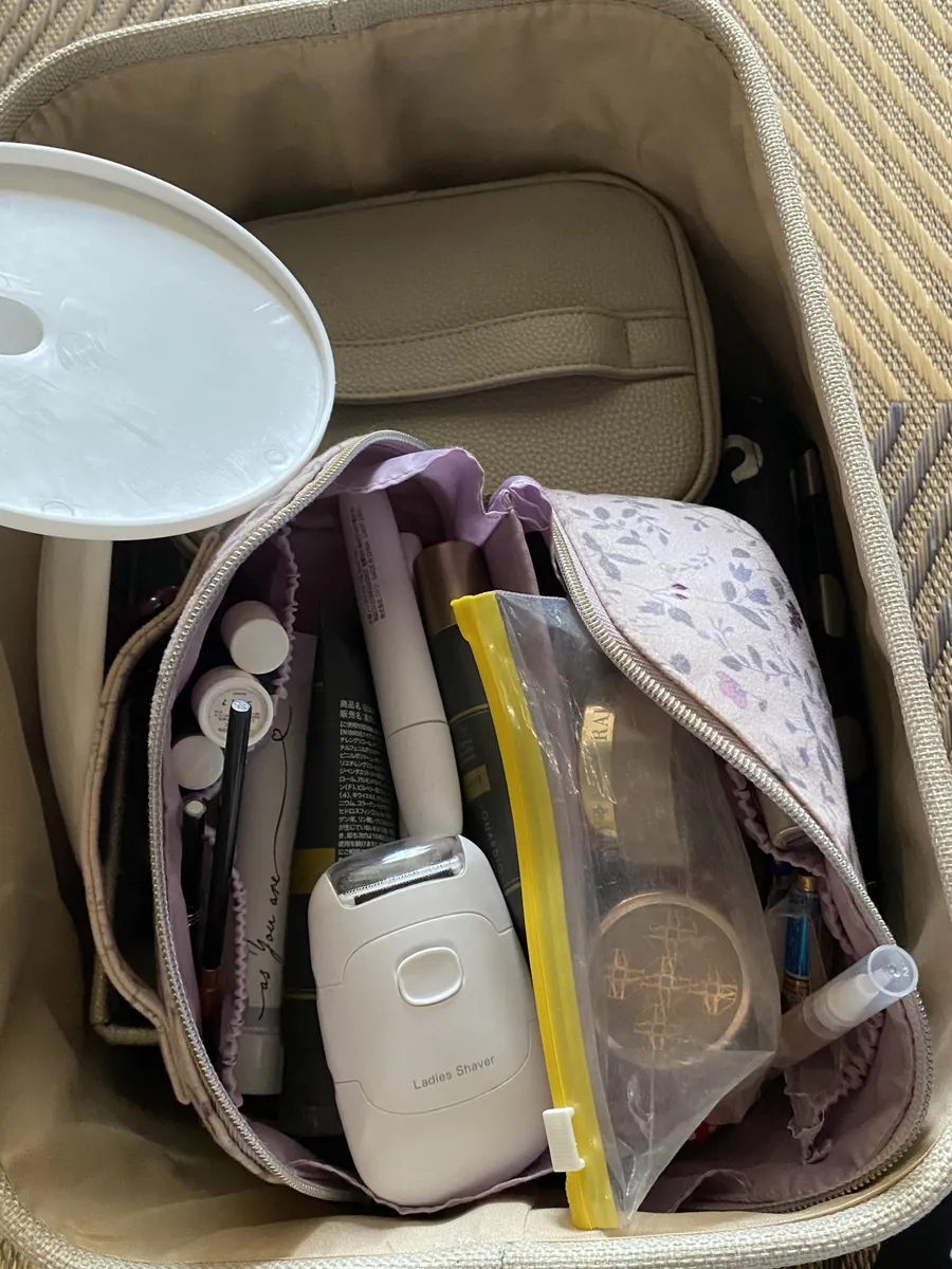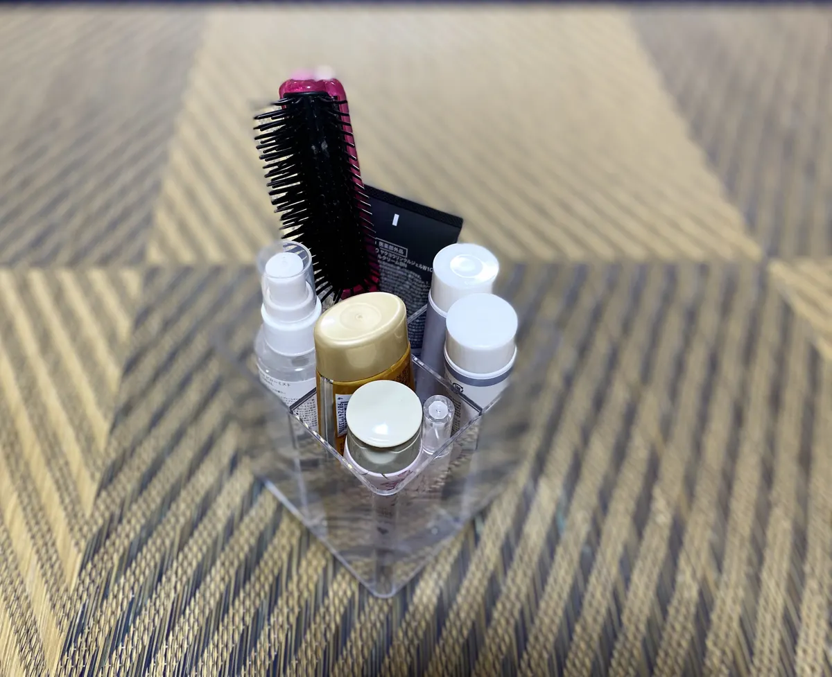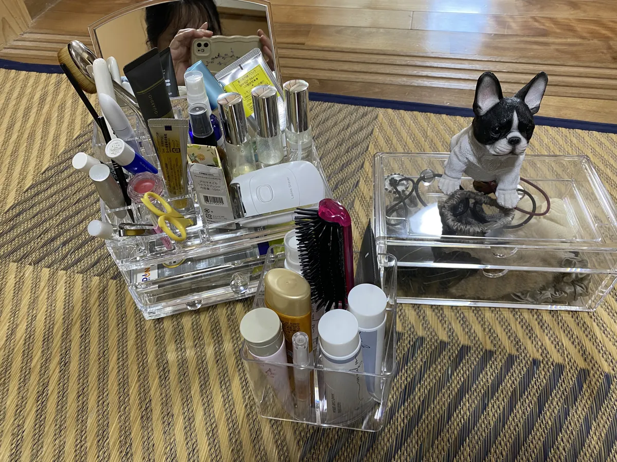 鏡がある方は家で出かける前に使うアロマスプレーや大きい化粧ブラシなどまとめ、化粧ポーチには持って行くものだけに変更