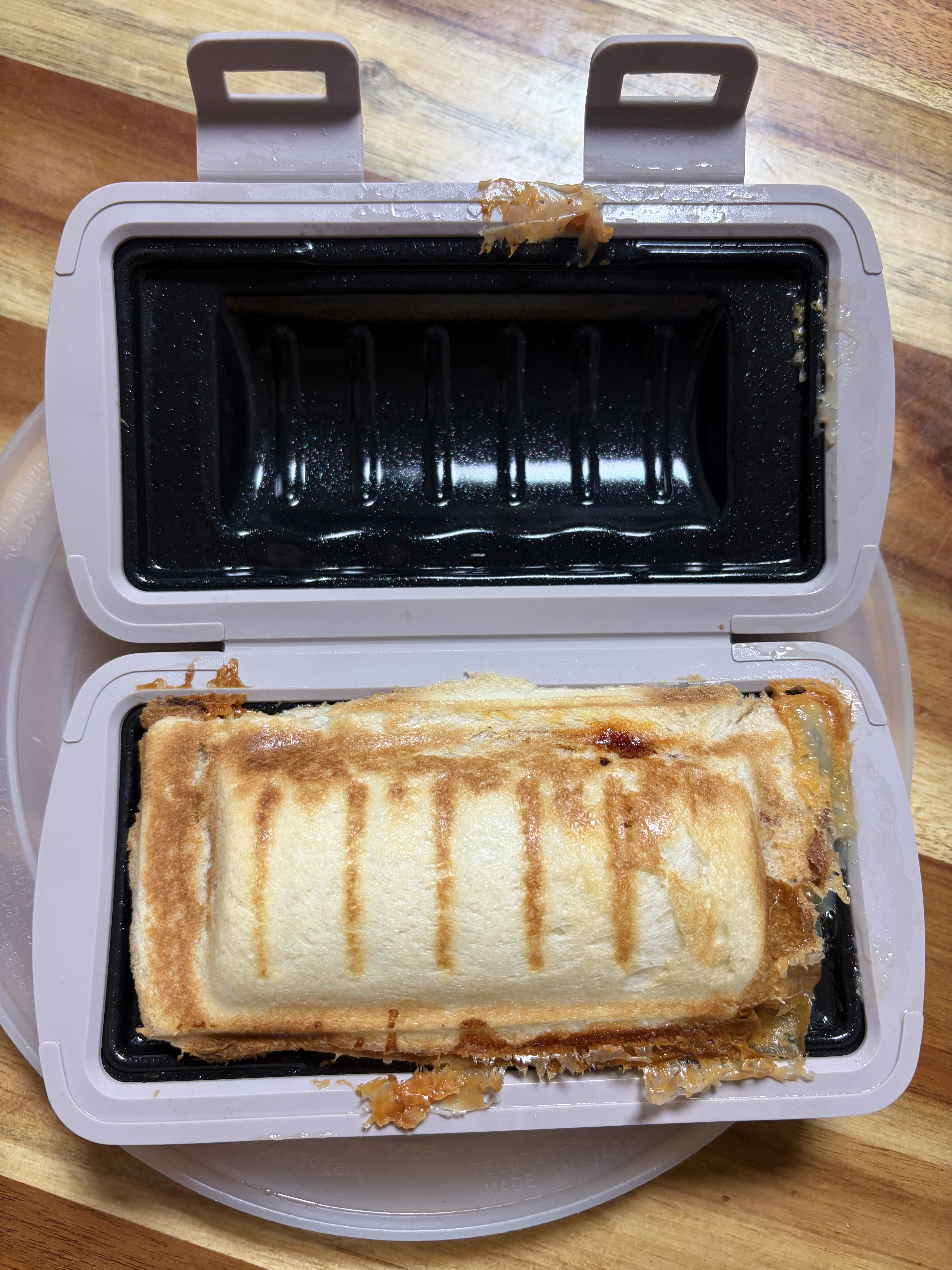 1回目のホットサンドが完成したあと、そのまま広げた状態で2分くらい放置。