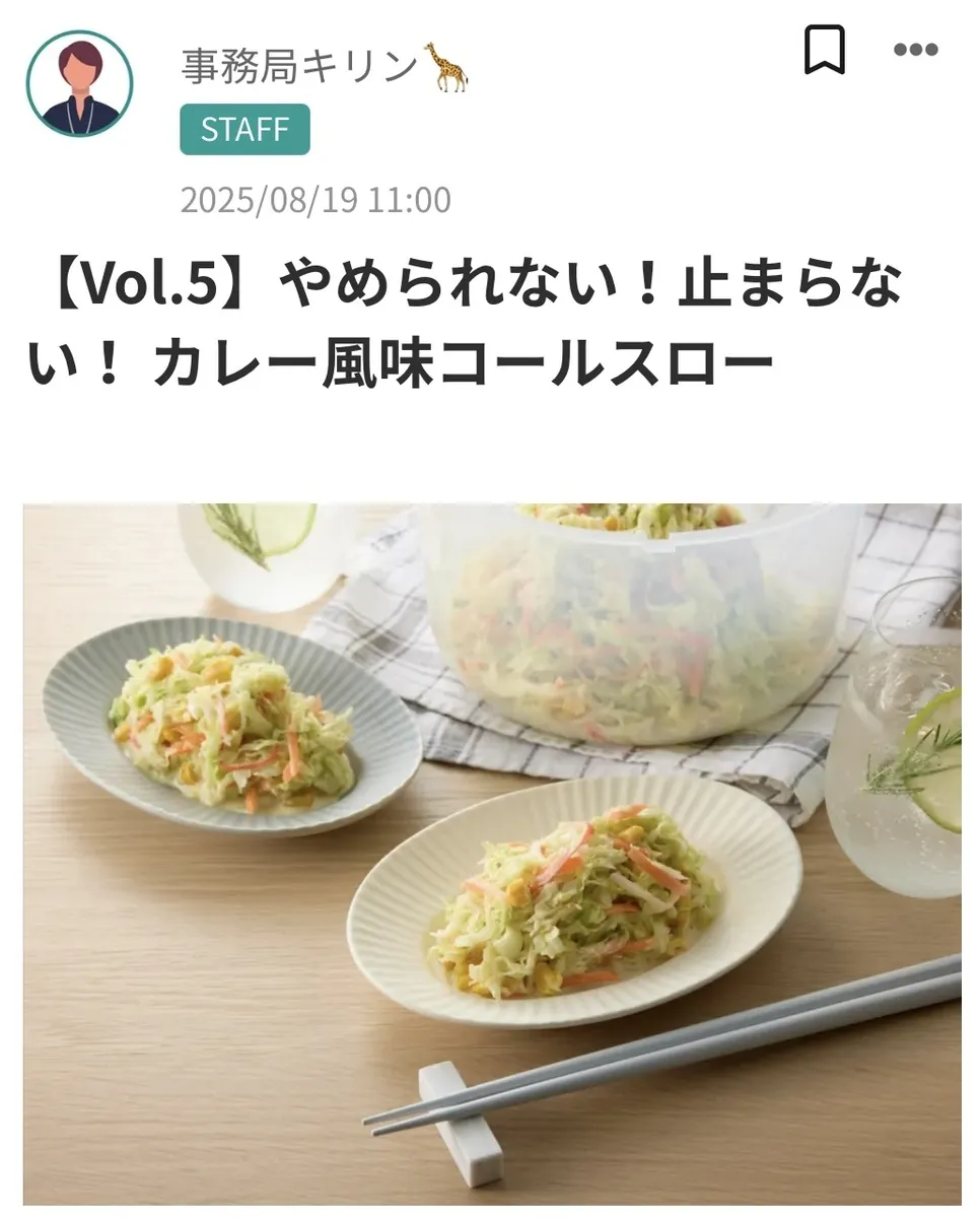 いつものコールスローに、カレー粉のスパイシーさが加わってとっても美味しかったです🤤💕💕