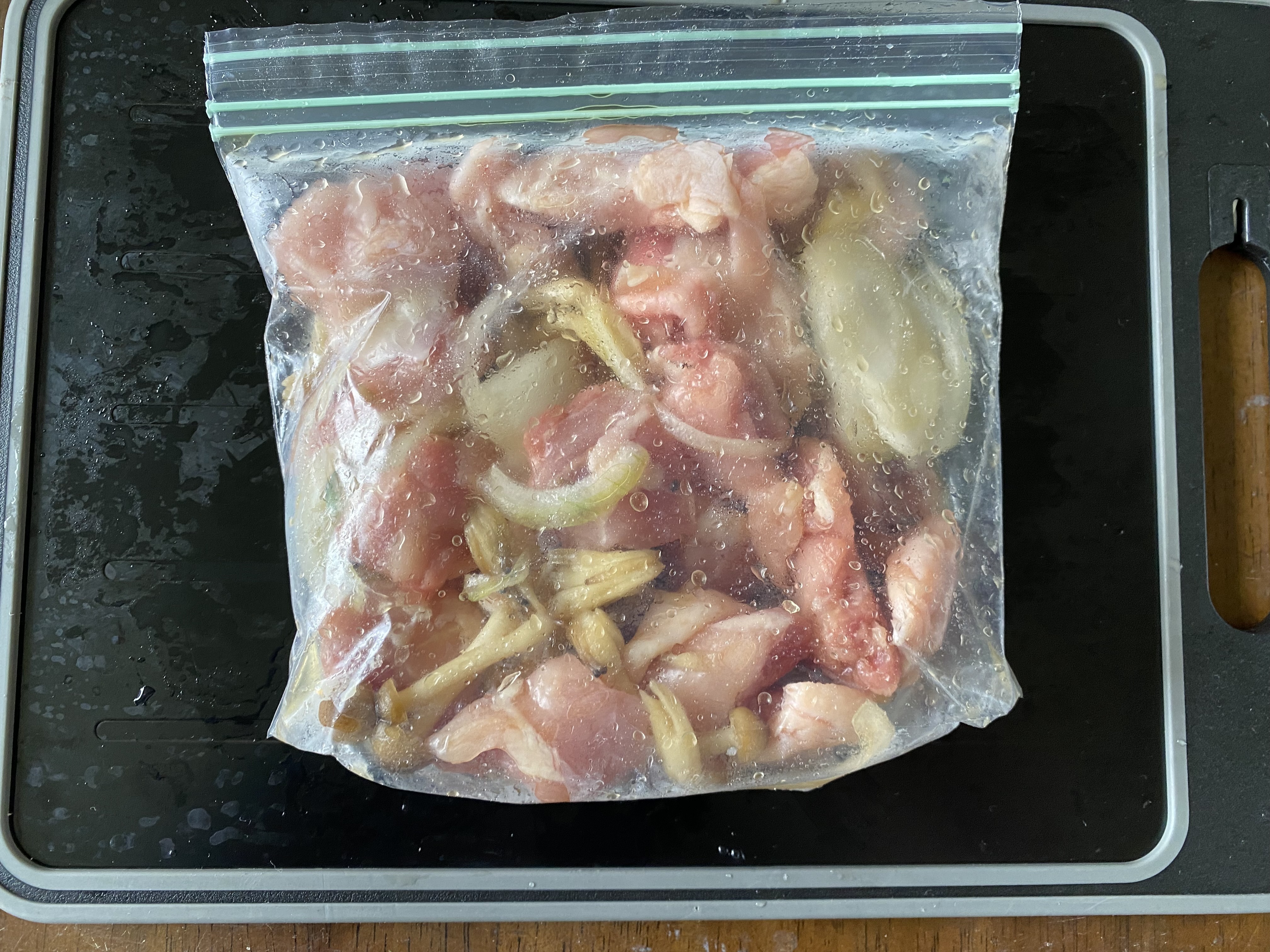 材料全部入れて30分染み込ませました。解凍プレートの上で寝かせて置きました。