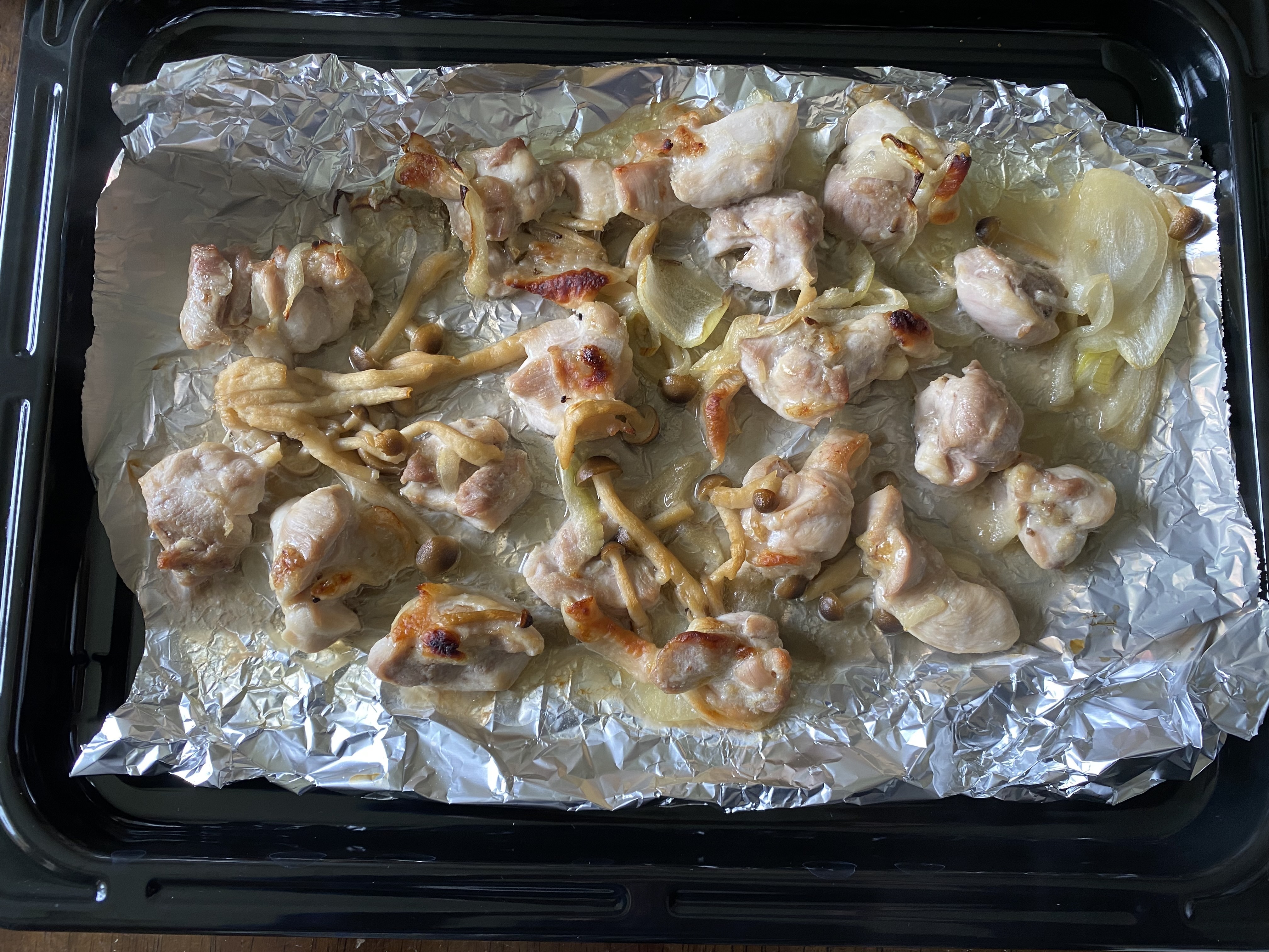 焼き色も付いて鶏肉の油が鉄板の上に流れ出てました👏👏👏(冷えると油が白く固まっていたので確実に油です)
