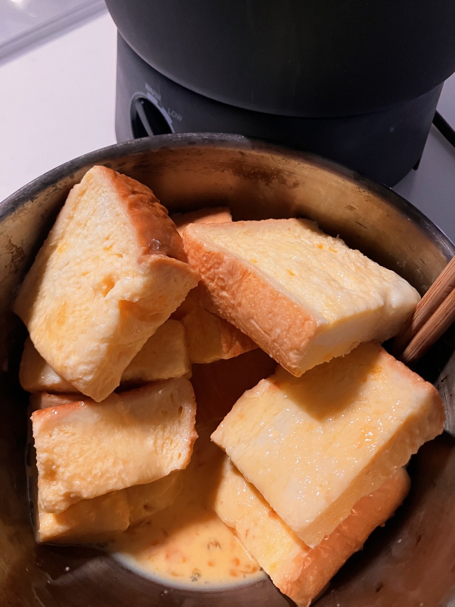 バターを入れ 浸したパンを焼く