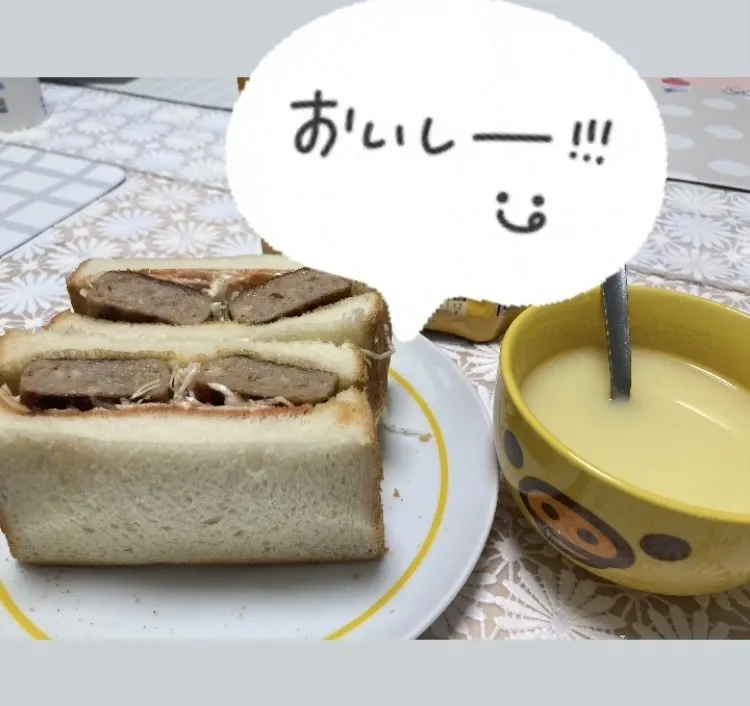 冷凍のハンバーグを焼いてトーストにサンドしてケチャップとマヨネーズで味付けしただけの簡単料理ですが、とっても美味しかったです😋💕💕