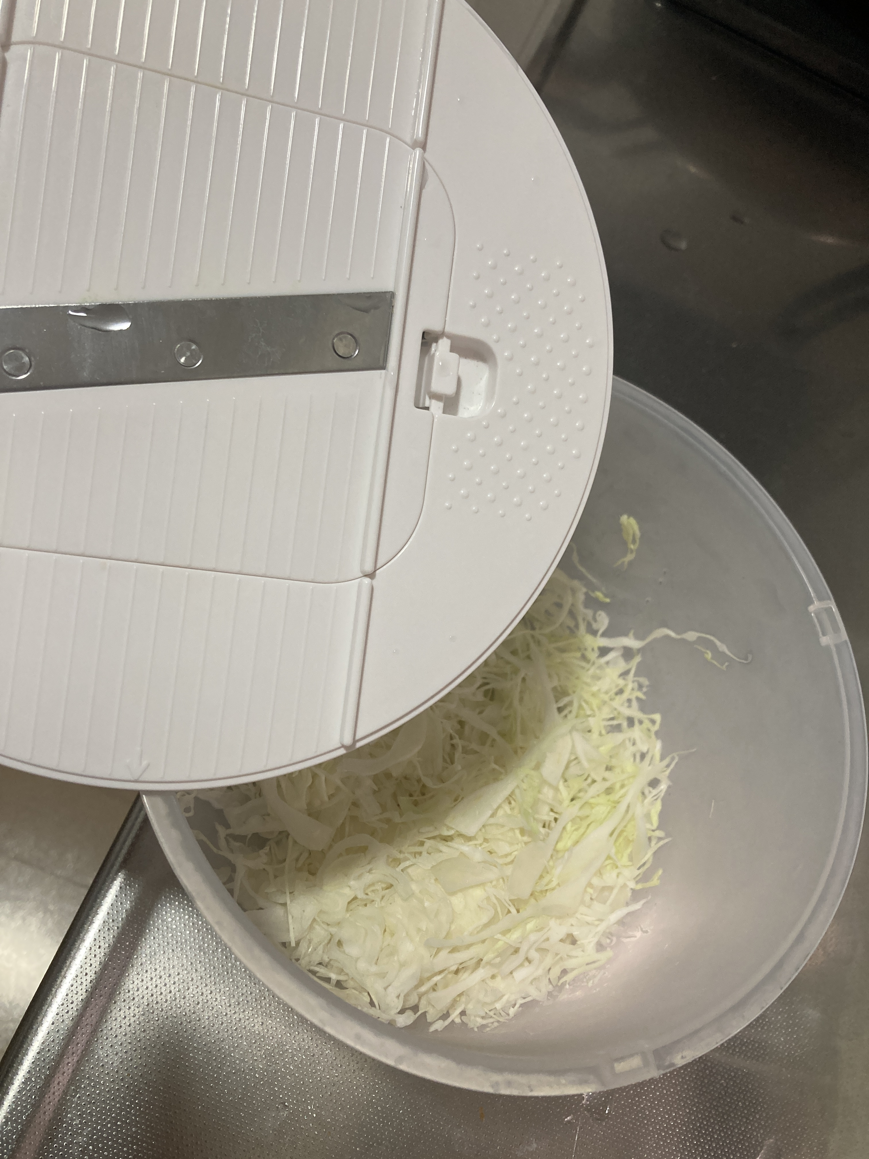 今まで切ってたスピードの1/3の時間でキャベツの千切りが作れたし、これめっちゃ良いわ!って喜んでました👏👏👏