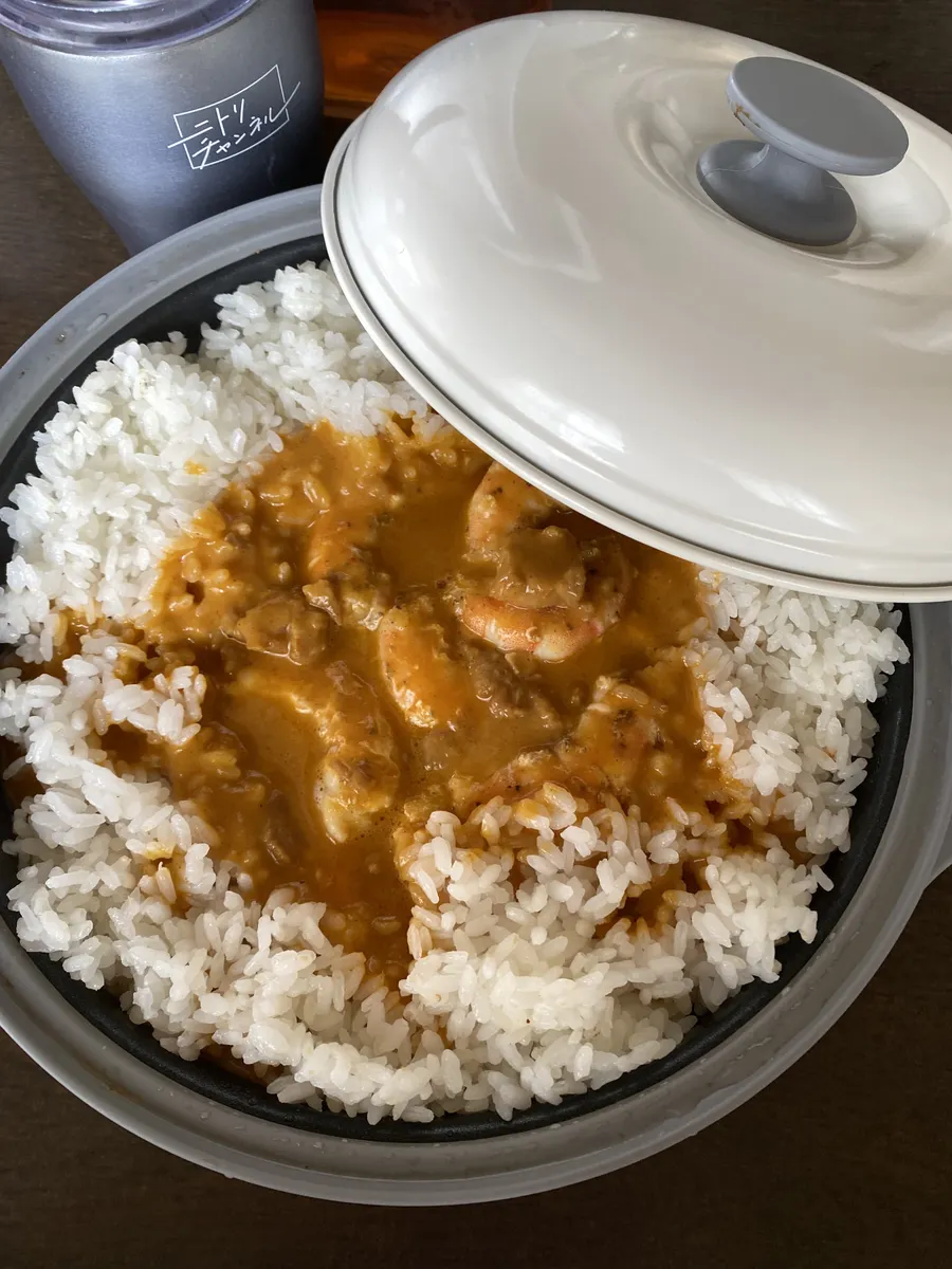 チキンだけど🦐入れて食べてみました。これはお子さんにも食べやすい、でも甘口ではないクリーミーさがクセになる🍛でした。