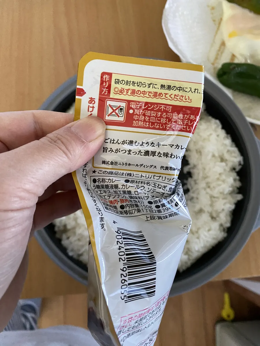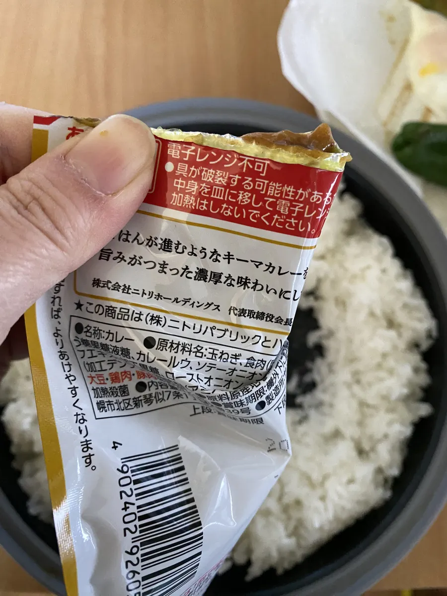 レトルトカレーの開封方法、ありがとうございます😃
