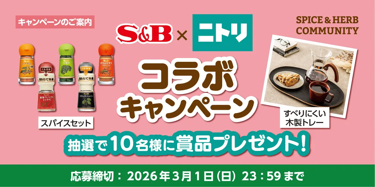 エスビー食品さんのコミュニティサイト「SPICE&HERB COMMUNITY」と「ニトリチャンネル📺」それぞれのサイトで、プレゼントキャンペーンを開催します🎁