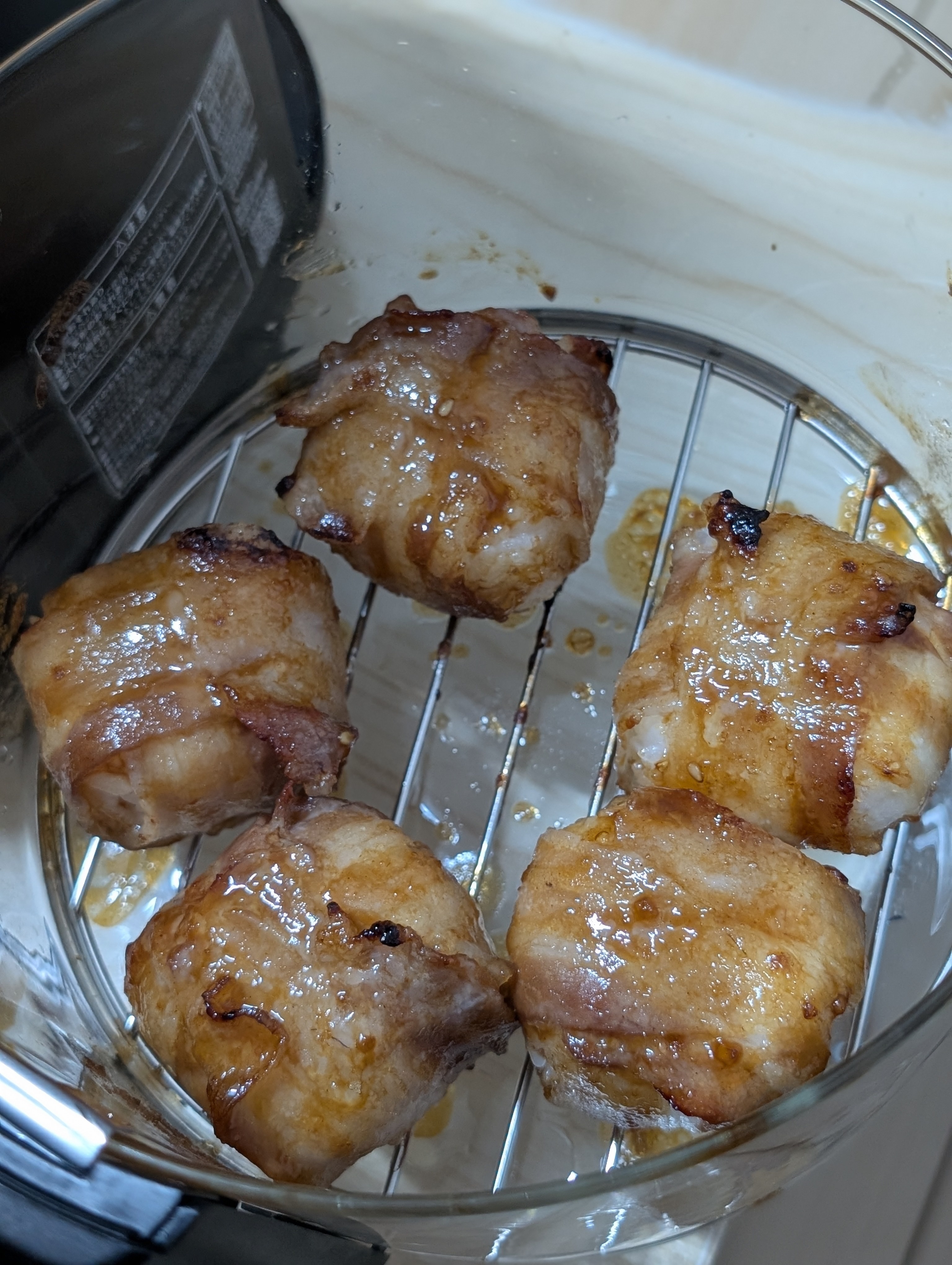 フライパンで作るとアブラがギトギトになるけど、ノンオイルフライヤーなら、いい塩梅でアブラが落ちて美味しー、ヘルシー、後片付けも楽チンですね(^^)