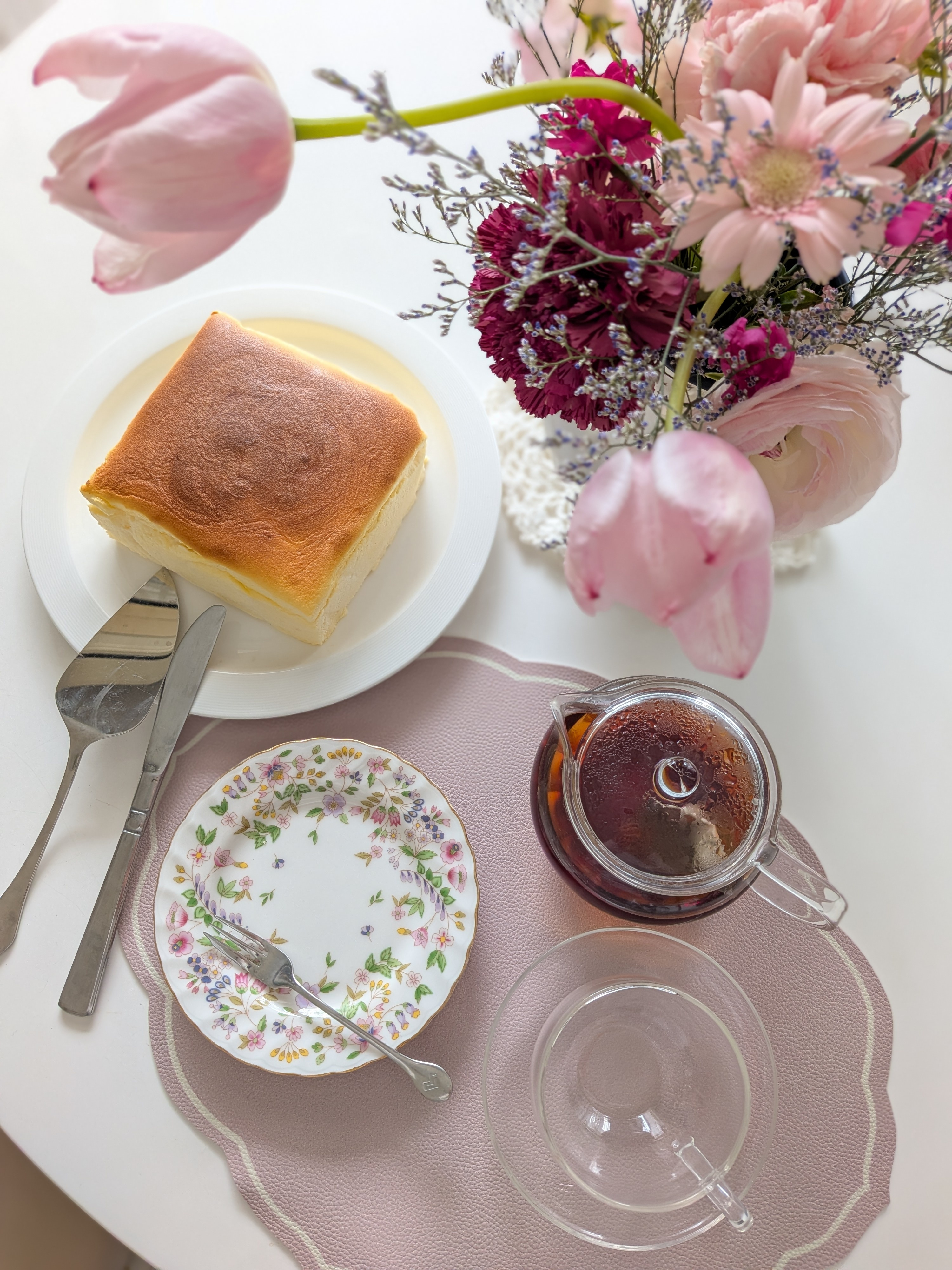 ご主人から💐、そのお礼にお手製のヨーグルトスフレケーキ🍰