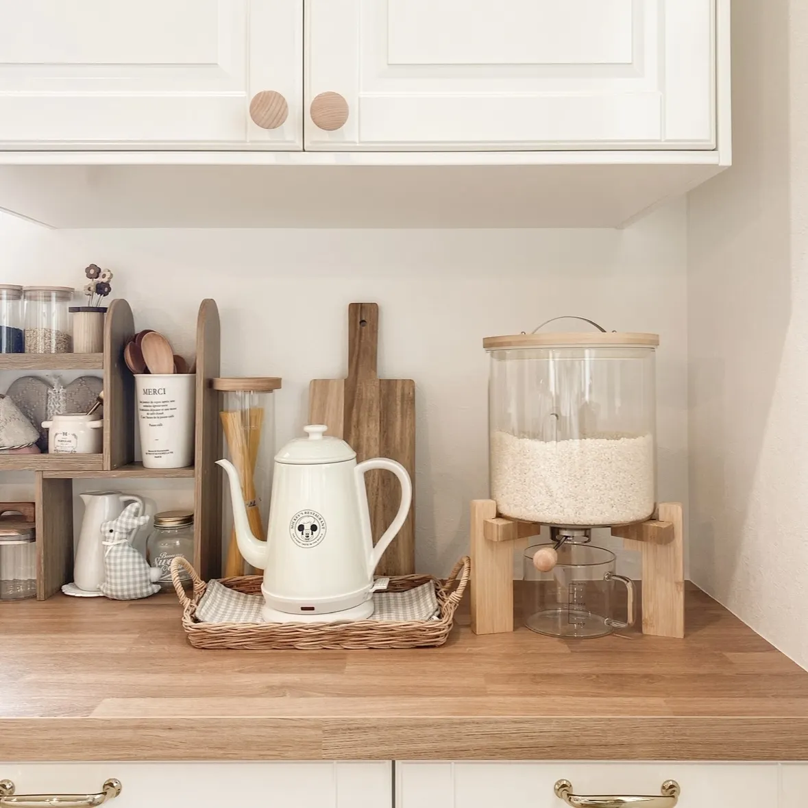 ここの米びつやケトルが置いてある場所も好きなものがたくさん詰まっています😍😍