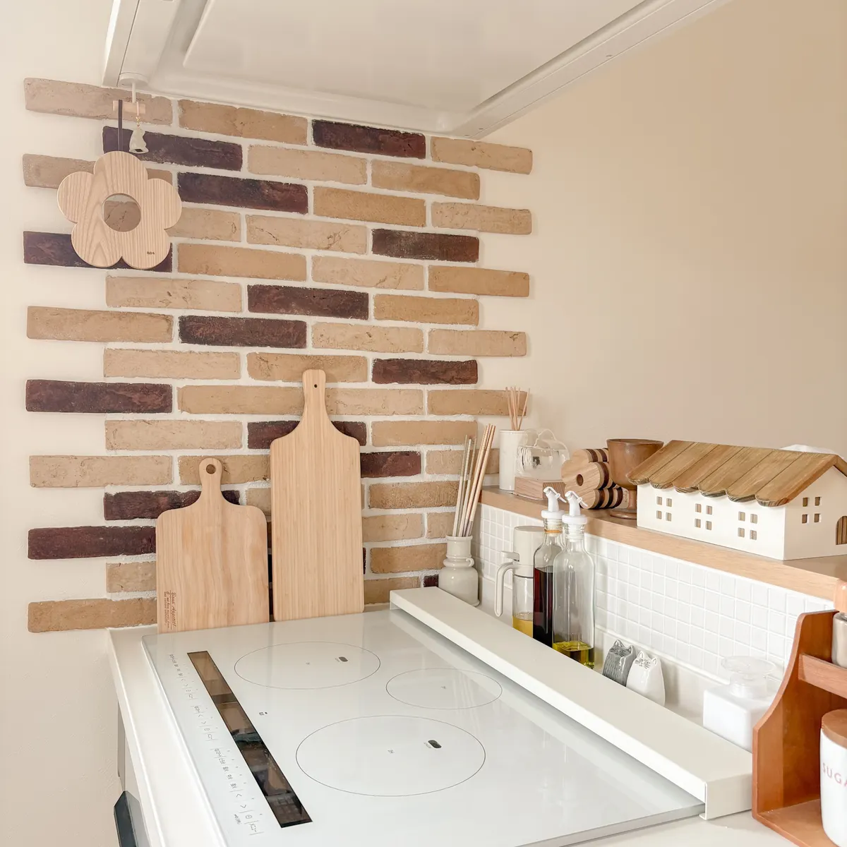 レンガは工務店さんに何度もお手入れ大変そうだけど大丈夫!?油とか跳ねたらシミにならない!?などなどたくさん心配されたけど笑、とってもお気に入りの場所です♡🧱🧸