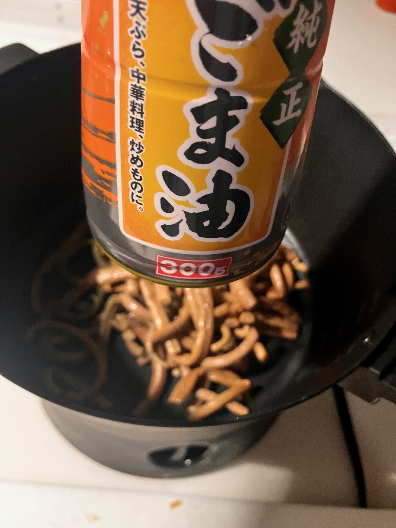 ②ごま油で ゼンマイを炒める