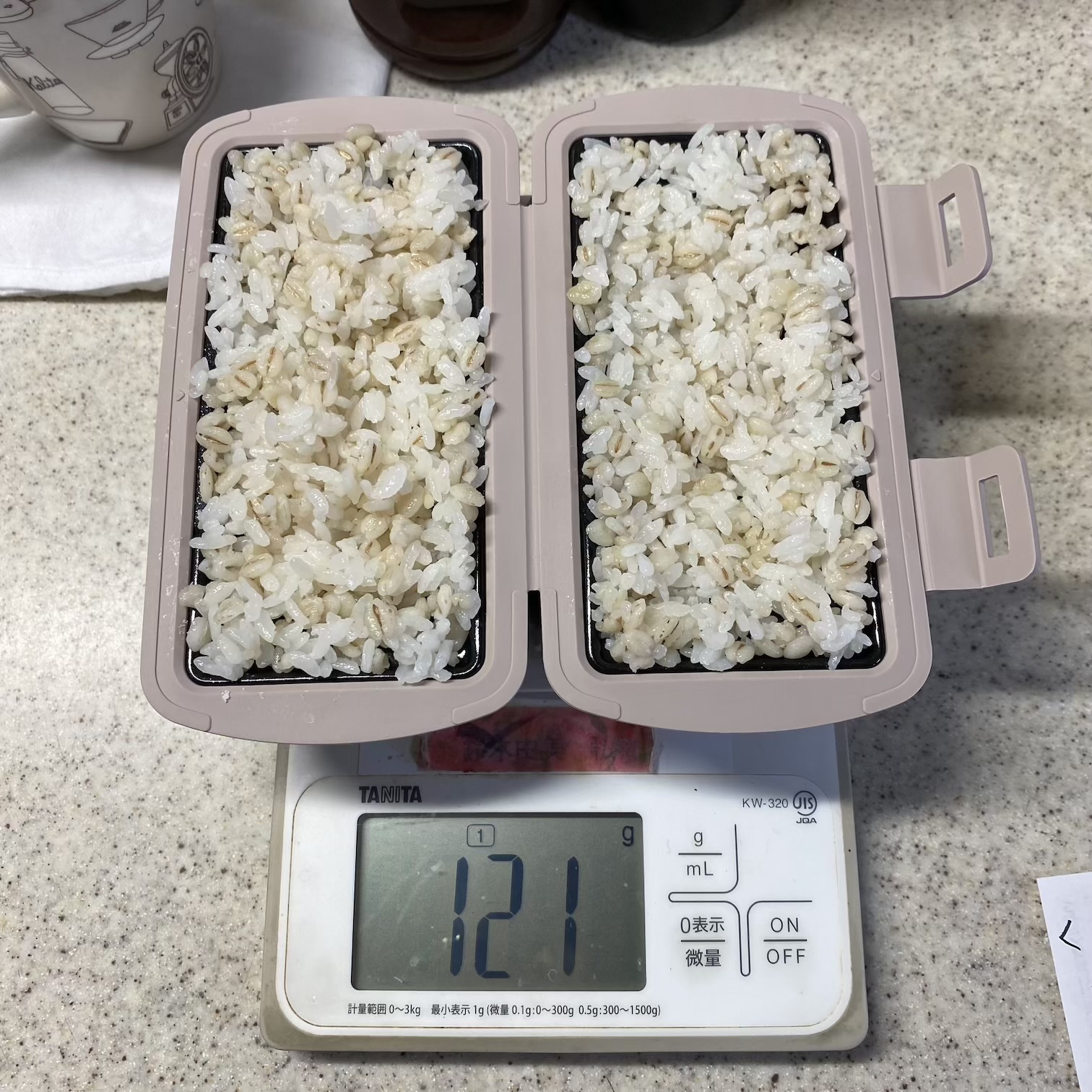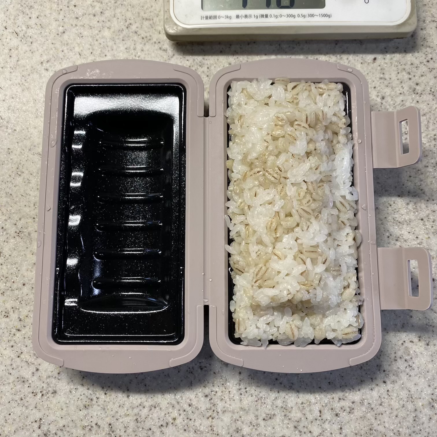 1️⃣ごはんは温めて1%弱の塩を混ぜる。いつも麦ごはんを食べているのですが白米で全然かまいません。
