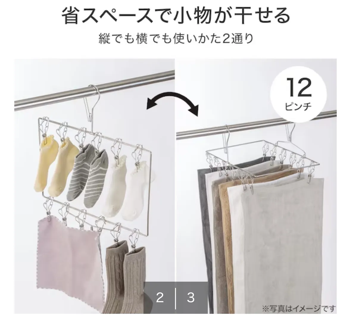 新商品のコーナーで見つけた、縦横干せるステンレスハンガー(12ピンチ)ですhttps://www.nitori-net.jp/ec/product/2112200002727s/