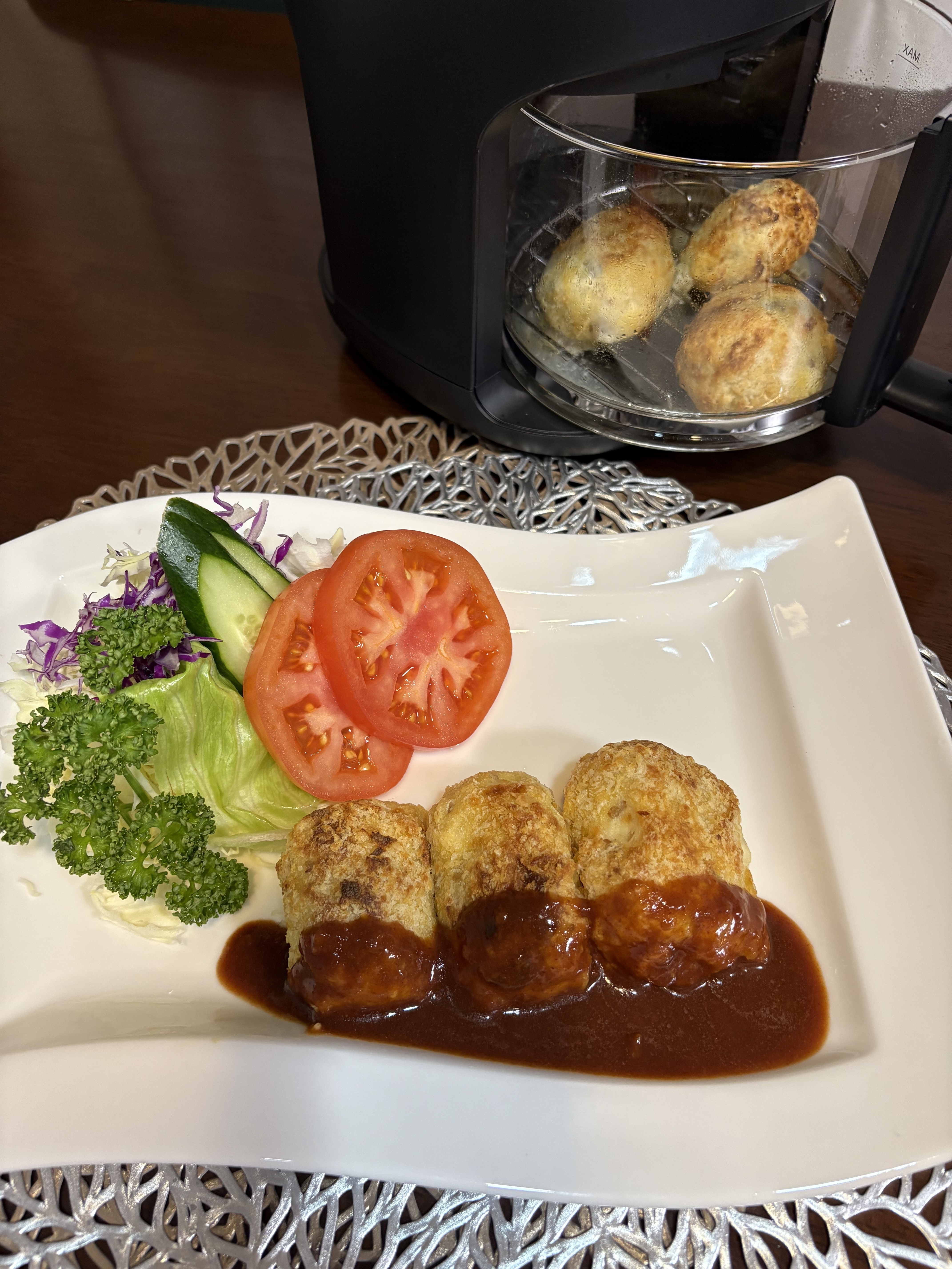 [中が見えるノンオイルフライヤー]https://www.nitori-net.jp/ec/product/2113400056121s/と[一台10役マルチ調理ポット]https://www.nitori-net.jp/ec/product/2113400054059s/でクリームミートコロッケを作りましたよ♪