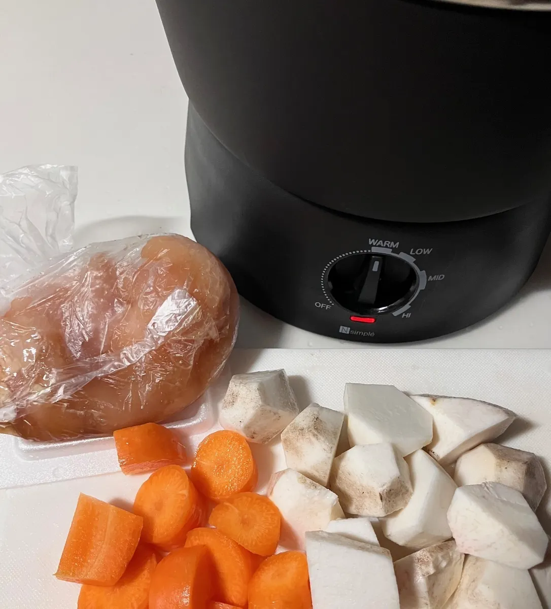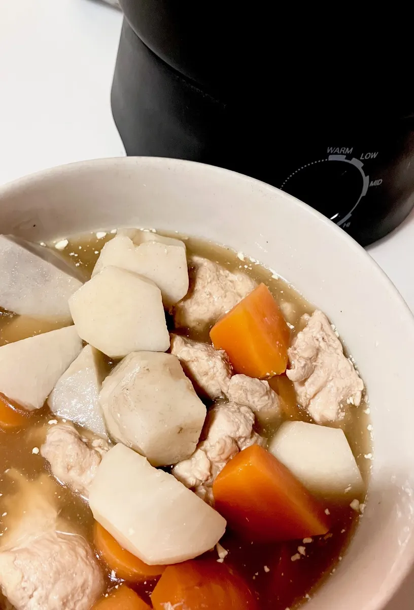 さといもと鶏肉🐔があったので マルチ調理ポットで煮物を作りました
