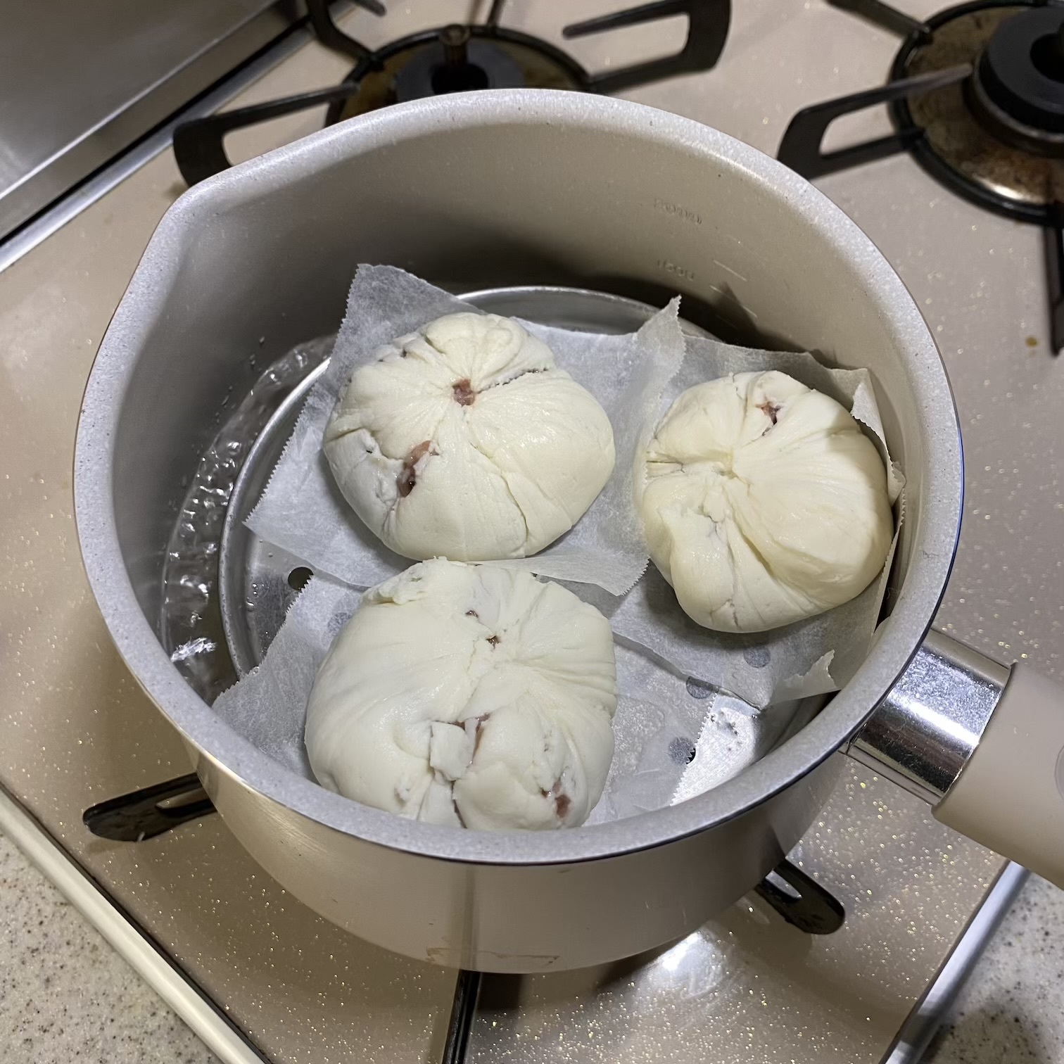 さやかさんのレシピは米粉肉まんの生地に砂糖と塩も入ってなかったと思いますが私はほんのり甘いと小麦粉の肉まんっぽいこなと思って足してます。