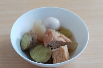 具:がんも・厚揚げ・さつまいも(軽くレンチンする)・大根(軽くレンチンする)