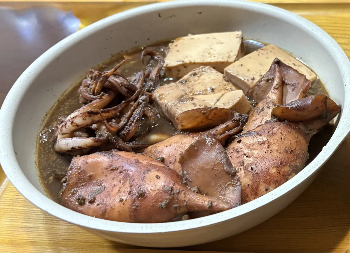 イカと、お大根や里芋と炊く方が多いと思いますが、我が家はお豆腐と炊きます🦑