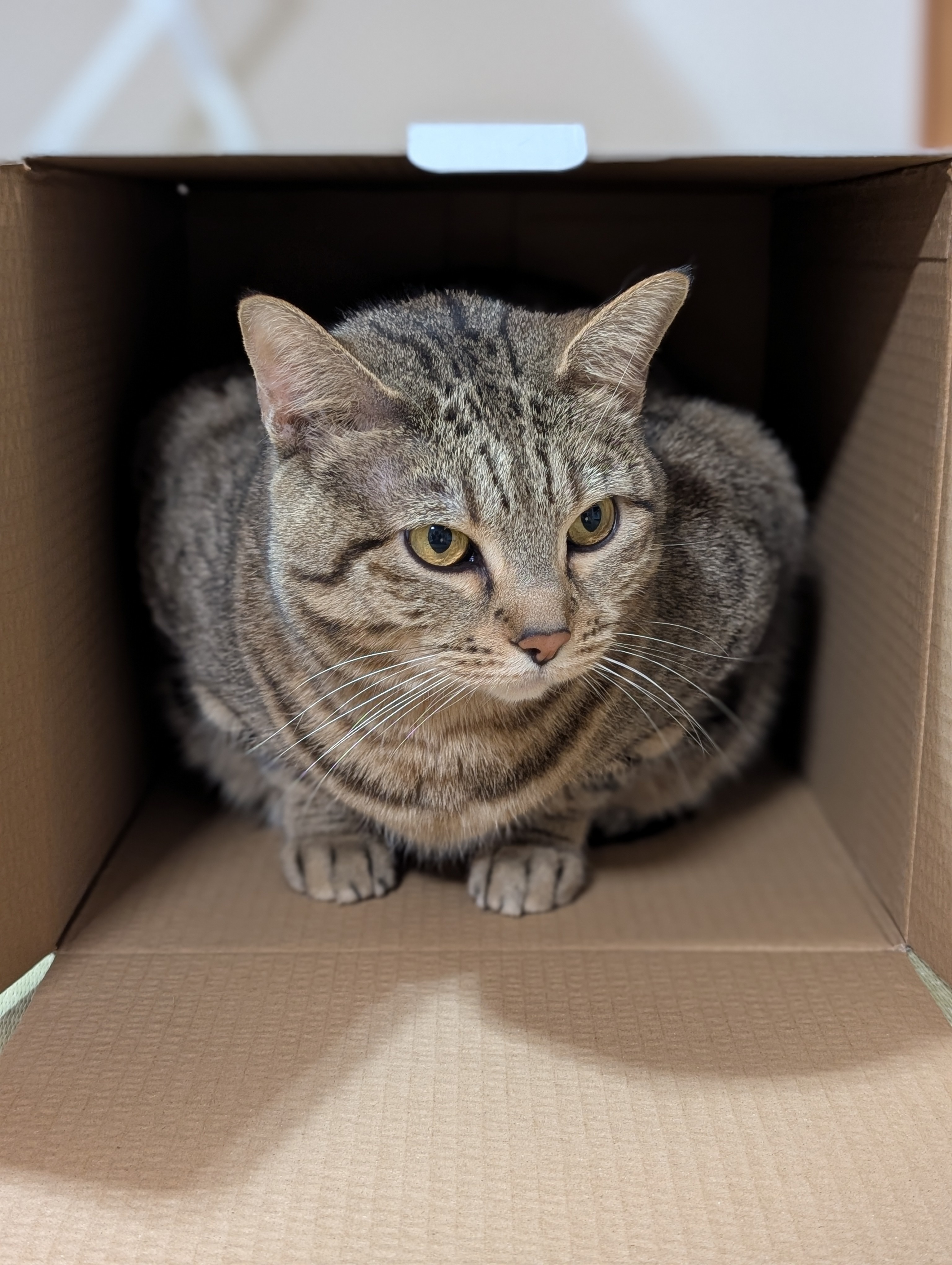 投稿を表示むぎちゃんかわいい!実家にはネコいたんですがこうやって箱に入るとそーっとふたしめてみたり…