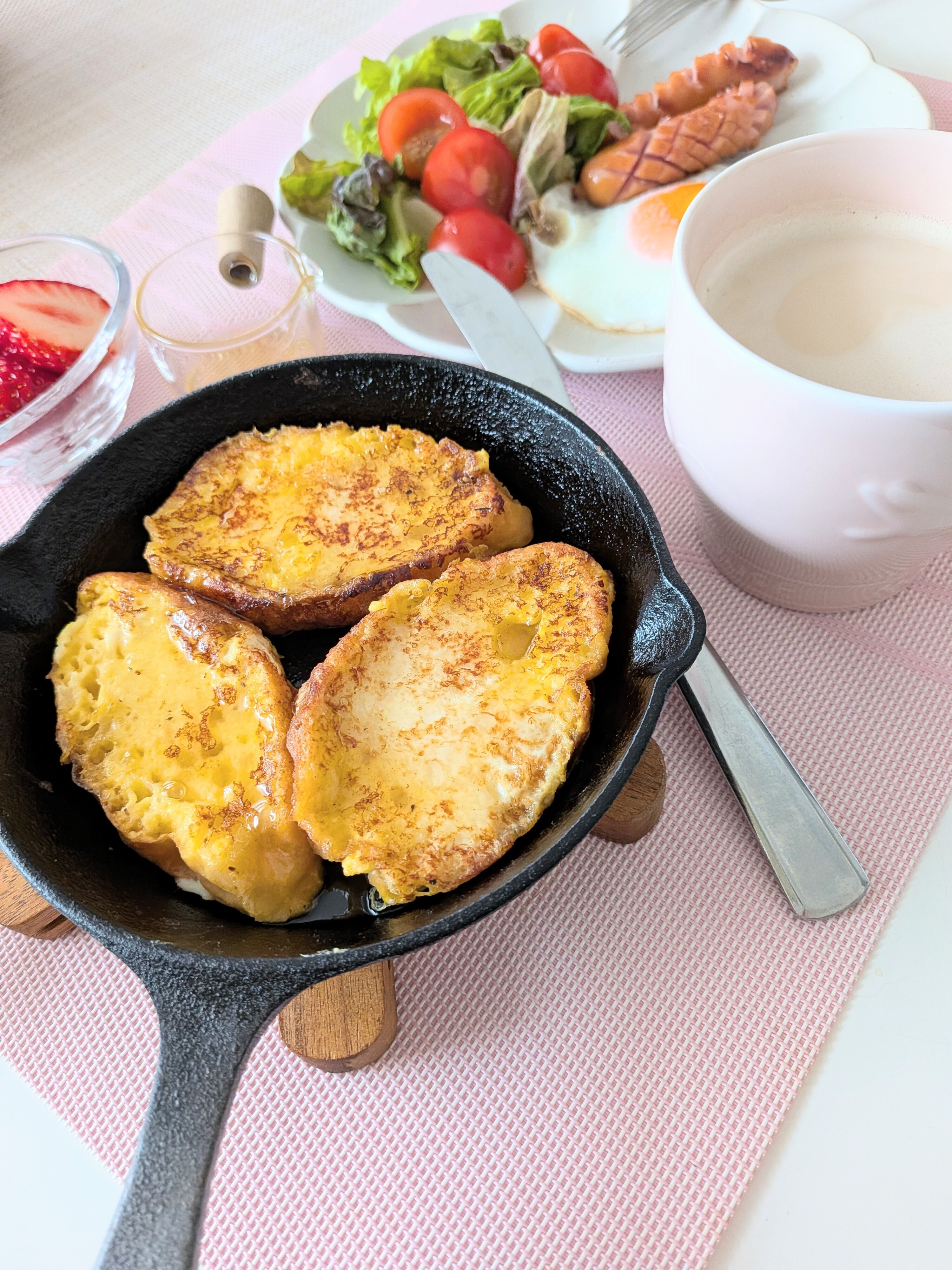 我が家は娘の学校に間に合わせないとなので、平日の朝はご飯と味噌汁、おかずになりがちで、フレンチトーストは休日に作ることが多いです😋