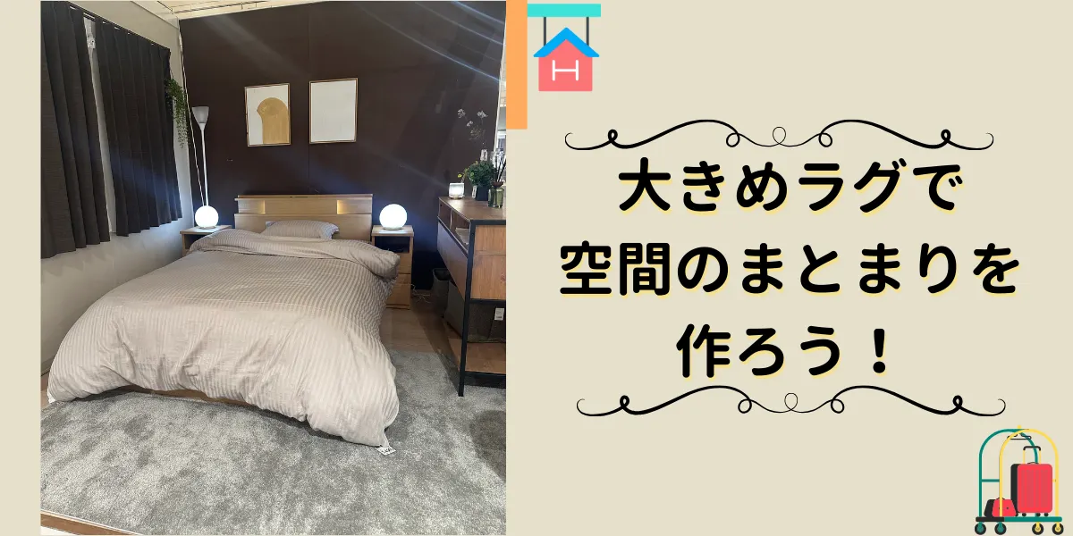 ベッドの下から広げるように大きめのラグやカーペットを敷くと、足元のぬくもりと高級感がプラスされて、部屋全体もまとまりやすくなります!