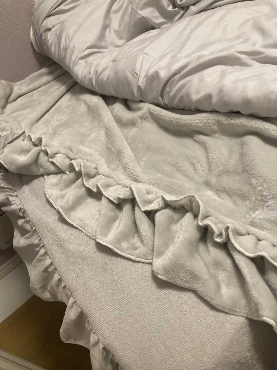 実は、私、フリル付きの毛布のピンクを使っています!🤩