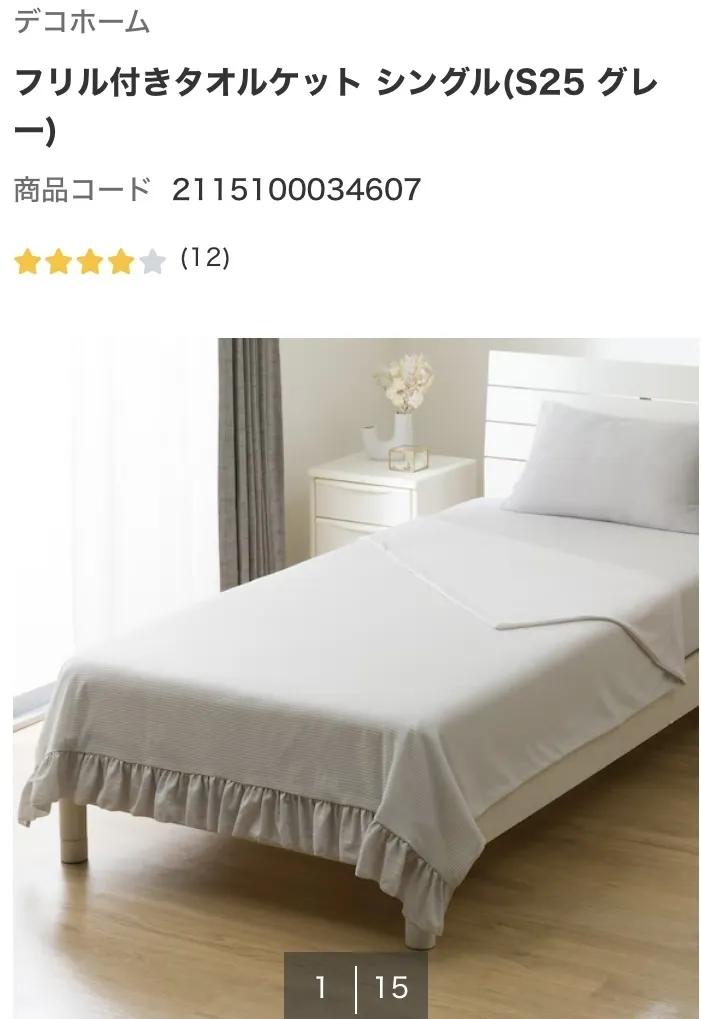 こちらは、以前『布団たち。』(https://community.nitori-net.jp/announcements/8ckizdc3hp71csw0)の投稿でご紹介したフリル付きタオルケットとフリル付き毛布です。