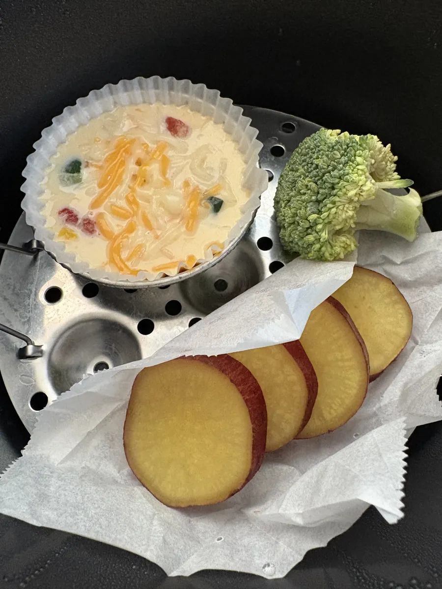 空いてるスペースにさつまいもとブロッコーも追加して一度に蒸してしまいました🤪
