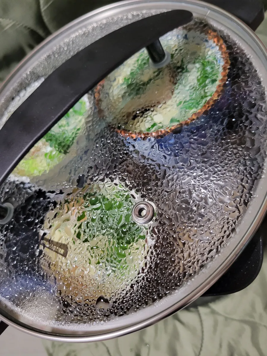 ⑦⑥卵液が全部程よく入ったら、蓋をします。(茶碗蒸しの専用の蓋でもいいんですが、私はアルミホイルで蓋してます。)