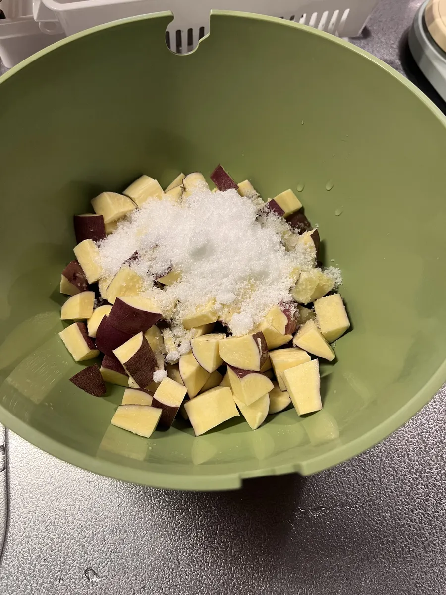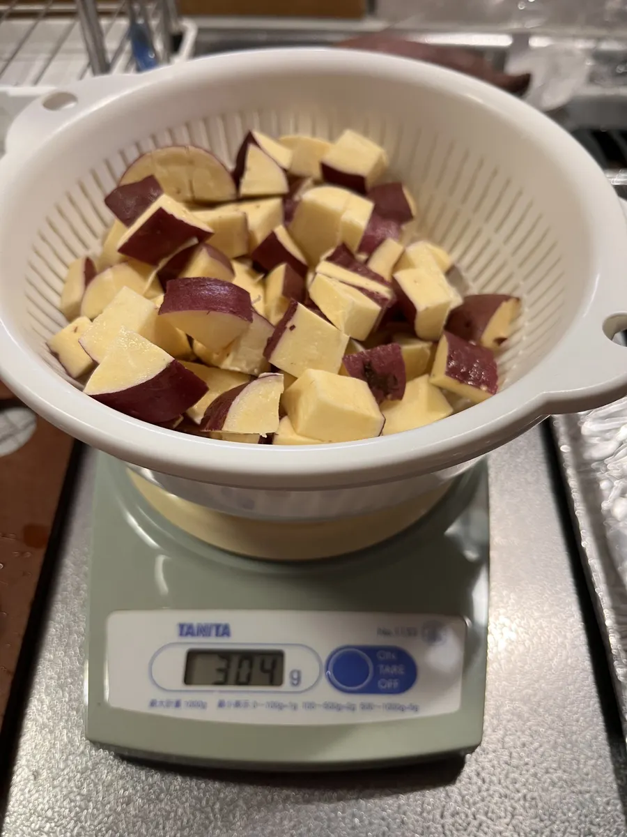 さつまいもをよく洗い角切りにし、水にさらす。