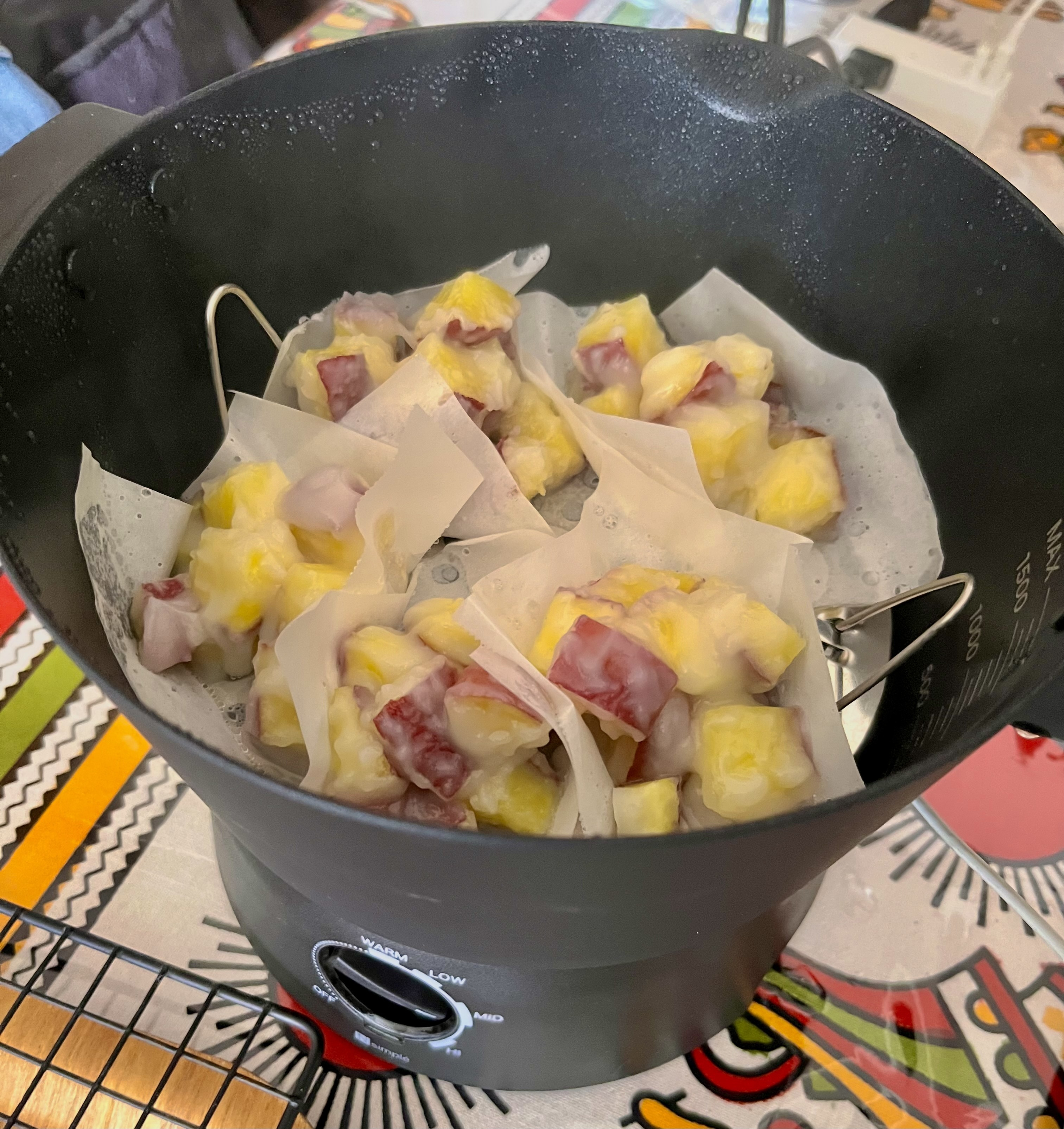 マルチ調理ポットでMIDからHIの中間くらいの温度で約20分蒸す。