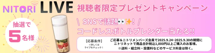 9月26日(金)21:00~:ニトリLIVE「価格見直し商品を大紹介✨」