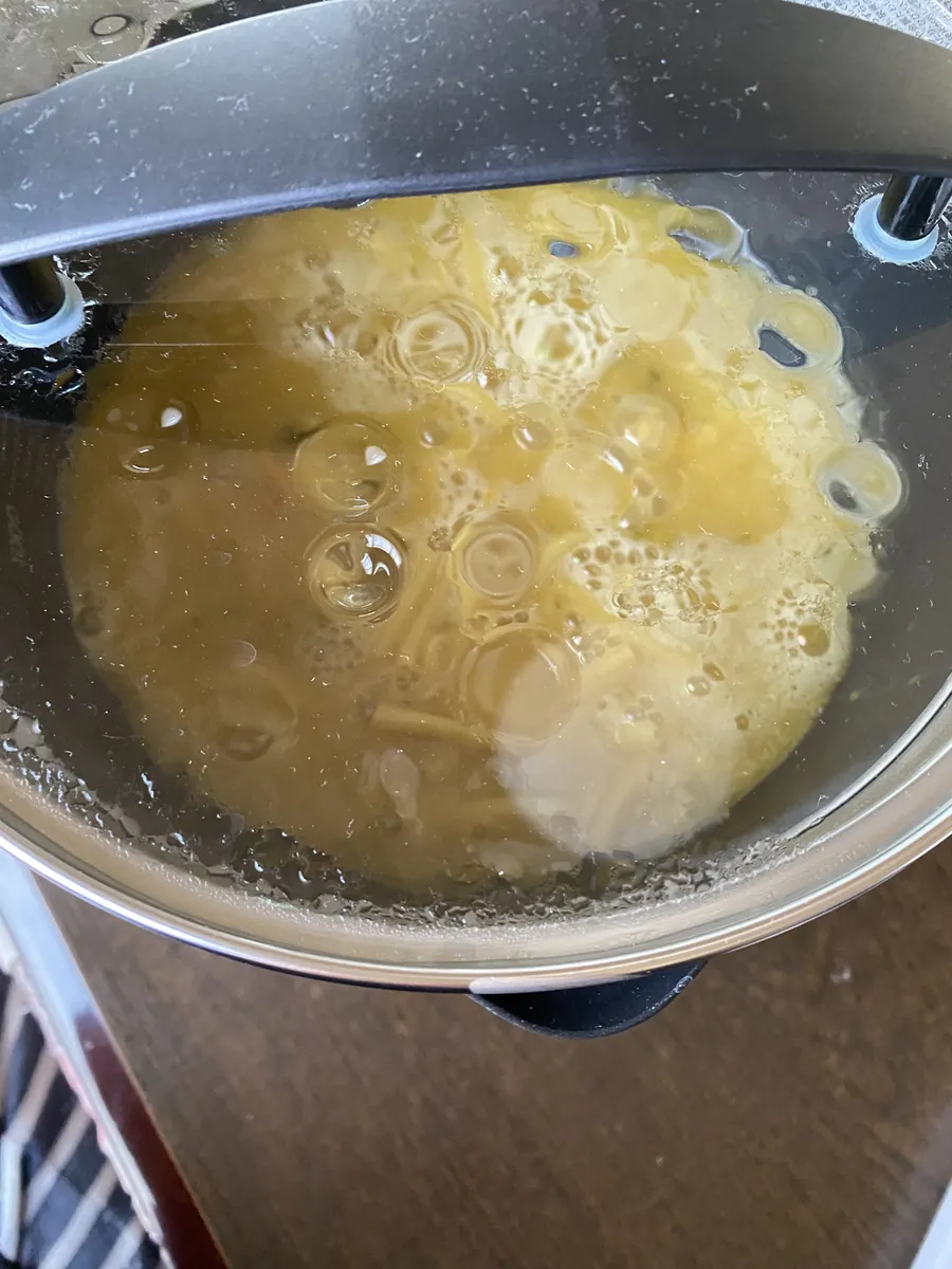 水を足してぐつぐつしてからタイマー3分、少しかたい△