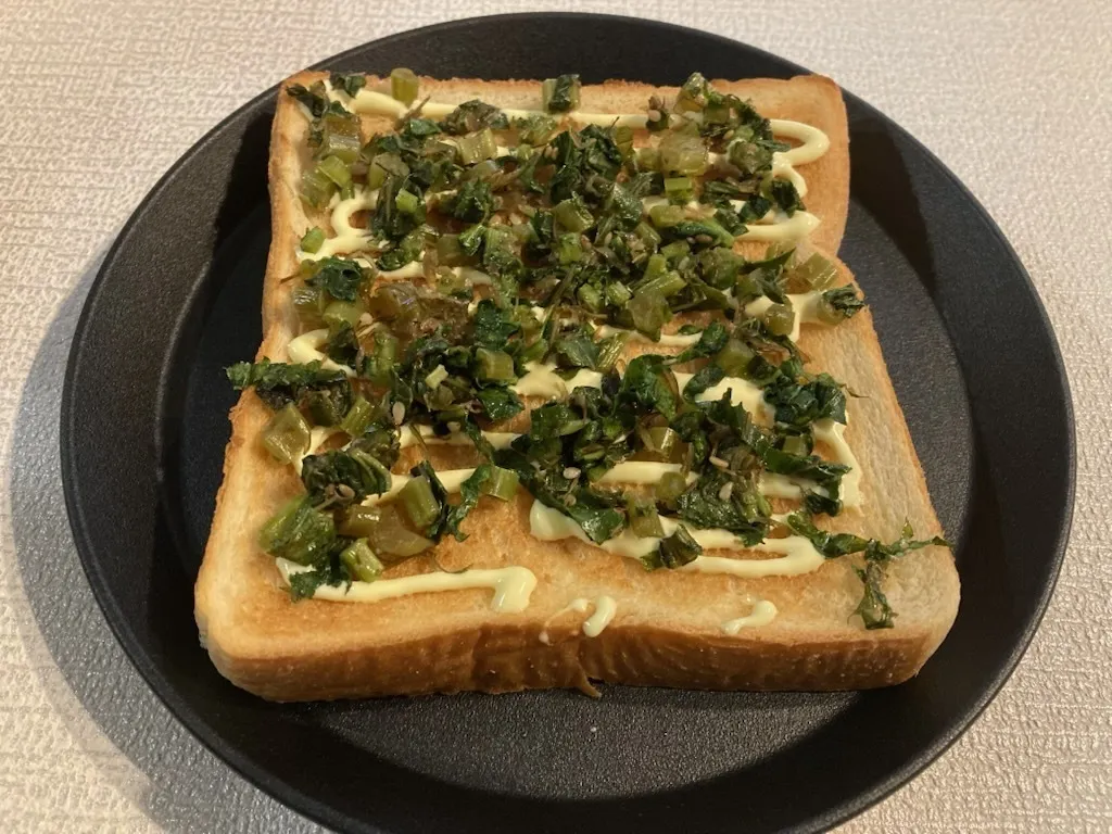 シャキシャキ感触が美味しくてご飯が進みます🍚緑の野菜嫌いな1歳児に出してみたらバクバク完食してて嬉しくなりました👏焼いた食パンの上にマヨネーズかけて、このふりかけをかけて食べるのもオススメです🍞この写真は数日後のタッパーです、最初はこんもりと入ってましたが爆速で減りました〜👍