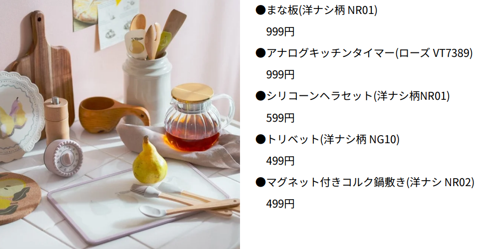 イエローがかわいい食器で食卓を彩り、洋ナシモチーフのキッチンツールを揃えれば、毎日の料理がもっと楽しくなります。
