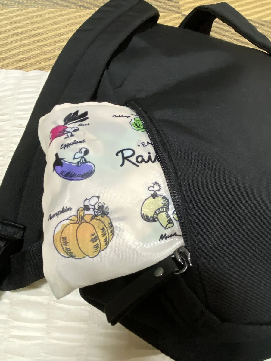 結構大きめのショッピングバッグも余裕で入りました。イメージとしては手のひらサイズ🫲入ります。背中にも少し厚みのある布なので背負ってても痛くないです。